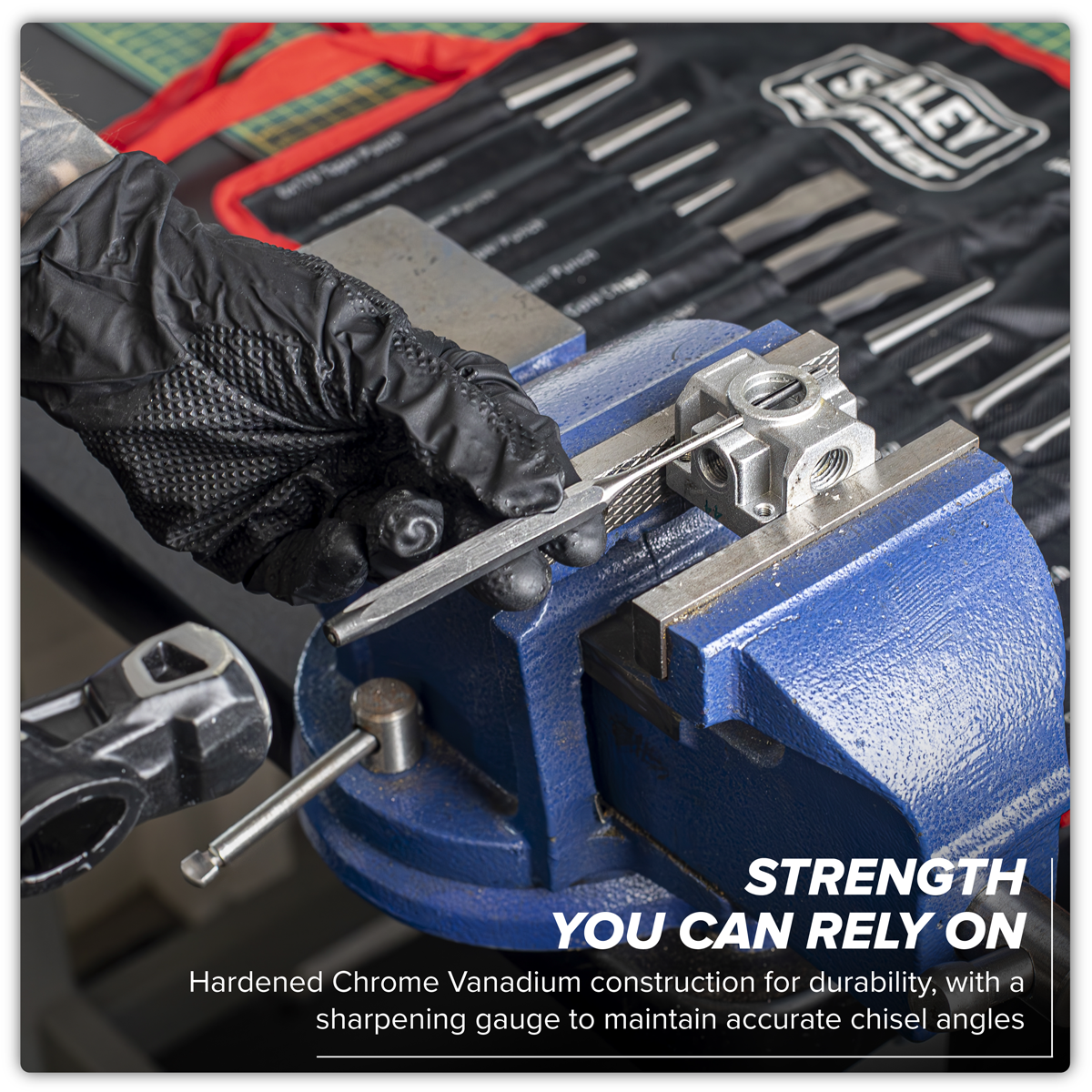43.78 2026-05-09Manufactured from heat treated Chrome Vanadium steel. Wide range of chisels and punches supplied in storage pouch.