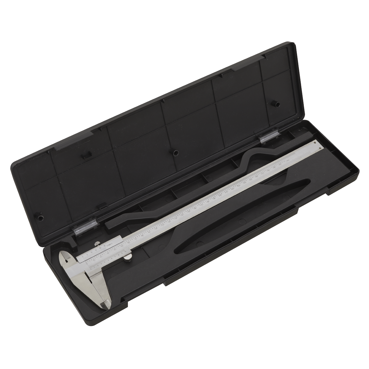 62.38 2026-01-18High quality, hardened and tempered stainless steel caliper with exterior/interior measurement and depth gauge. Metric and imperial scales graduated in 0.02mm and 0.001". Supplied in storage case.