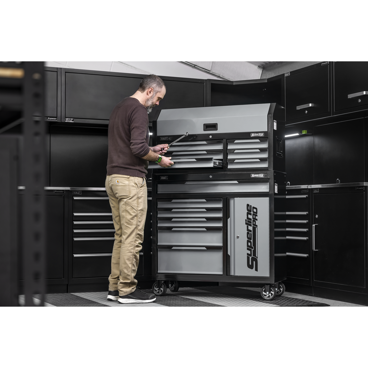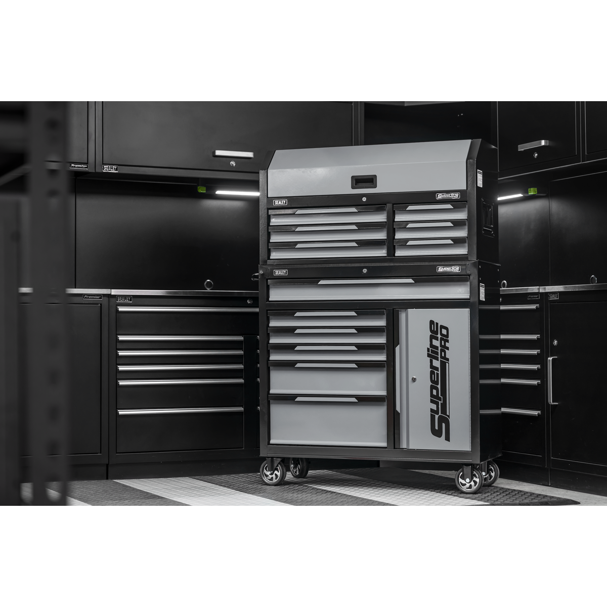 899.96 2026-04-16Manufactured from double skin side walls for enhanced strength and durability. Finished with a hi-gloss, triple baked powder coating to resist oil, dirt and mild solvents. Features smooth 35mm ball-bearing drawer slides. Fitted with four Ø127mm castors, two fixed and two swivel with brakes. Includes two carry handles on the top chest and a side handle on the bottom chest for convenient transport. Cylinder lock and locking bar to secure drawers. Supplied with two keys per lock.