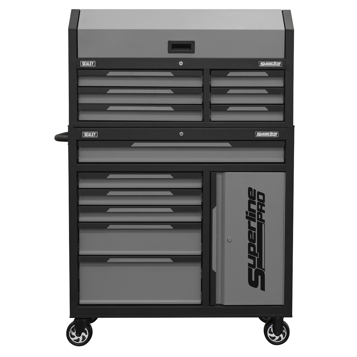 899.96 2026-03-26Manufactured from double skin side walls for enhanced strength and durability. Finished with a hi-gloss, triple baked powder coating to resist oil, dirt and mild solvents. Features smooth 35mm ball-bearing drawer slides. Fitted with four Ø127mm castors, two fixed and two swivel with brakes. Includes two carry handles on the top chest and a side handle on the bottom chest for convenient transport. Cylinder lock and locking bar to secure drawers. Supplied with two keys per lock.