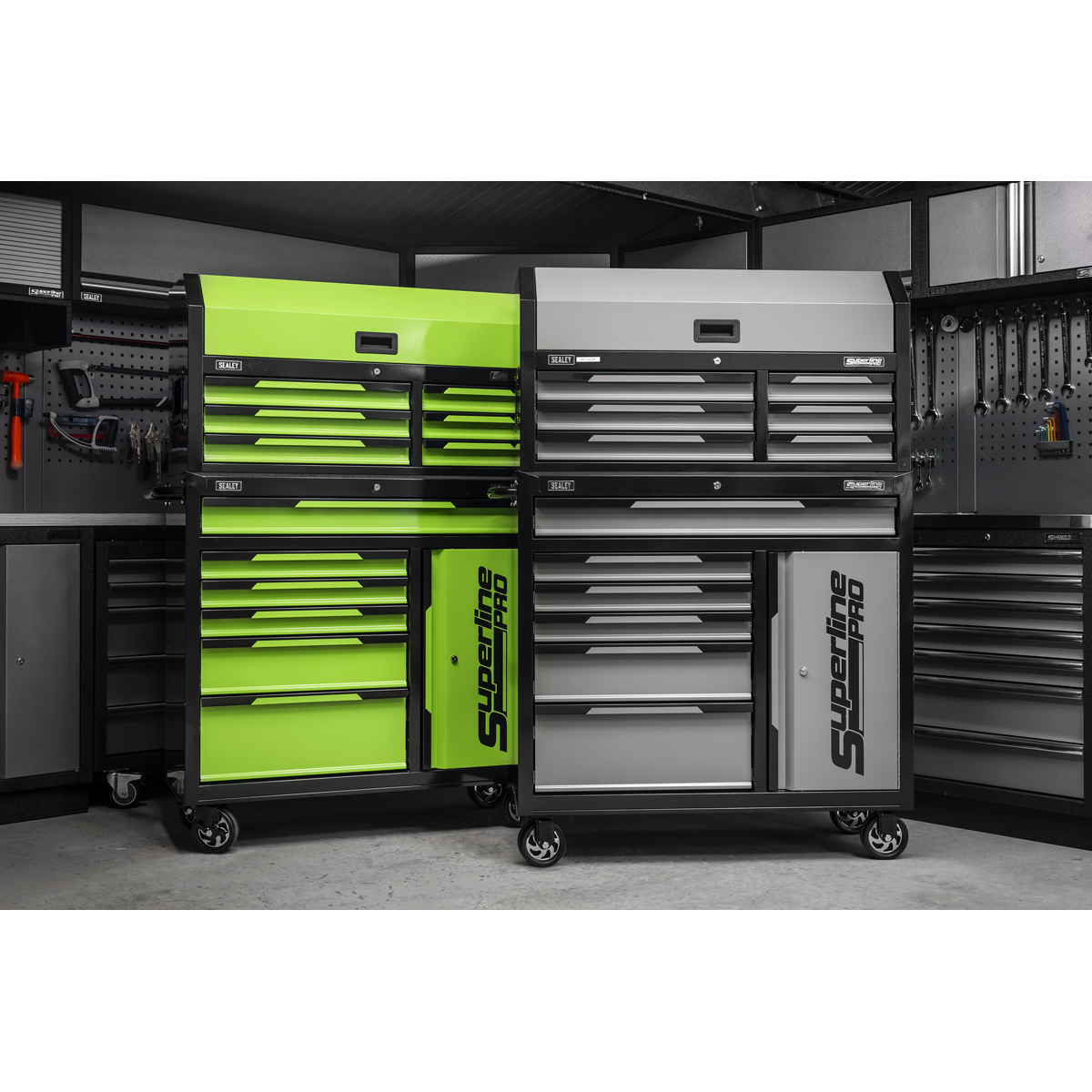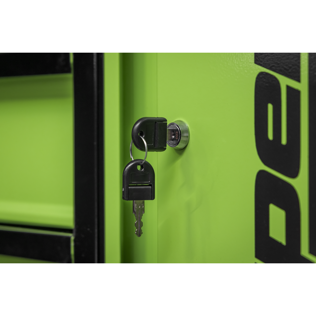 887.95 2026-05-26Manufactured from double skin side walls for enhanced strength and durability. Finished with a hi-gloss, triple baked powder coating to resist oil, dirt, and mild solvents. Features smooth 35mm ball-bearing drawer slides. Fitted with four Ø127mm castors, two fixed and two swivel with brakes. Includes two carry handles on the top chest and a side handle on the bottom chest for convenient transport. Cylinder lock and locking bar to secure drawers. Supplied with two keys per lock.
