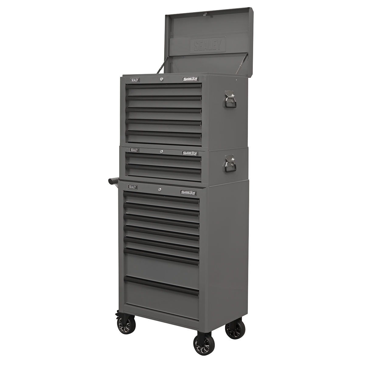 272.95 2025-12-01All heavy gauged steel construction and manufactured with steel inner walls for extra strength and durability. Heavy-duty 45mm ball-bearing drawer slides provide superior performance and carry heavier loads. Full height rear locking mechanism, locks full-length drawers in multiple locations. Added security provided by cylinder locks. Supplied with two keys. Rust and solvent resistant powder coat paint finish. Clamshell lid construction for improved access and visibility. Drawers ideally sized for fitting Sealey themed tool trays. Each drawer features aluminium drawer pulls and non-slip liners.
