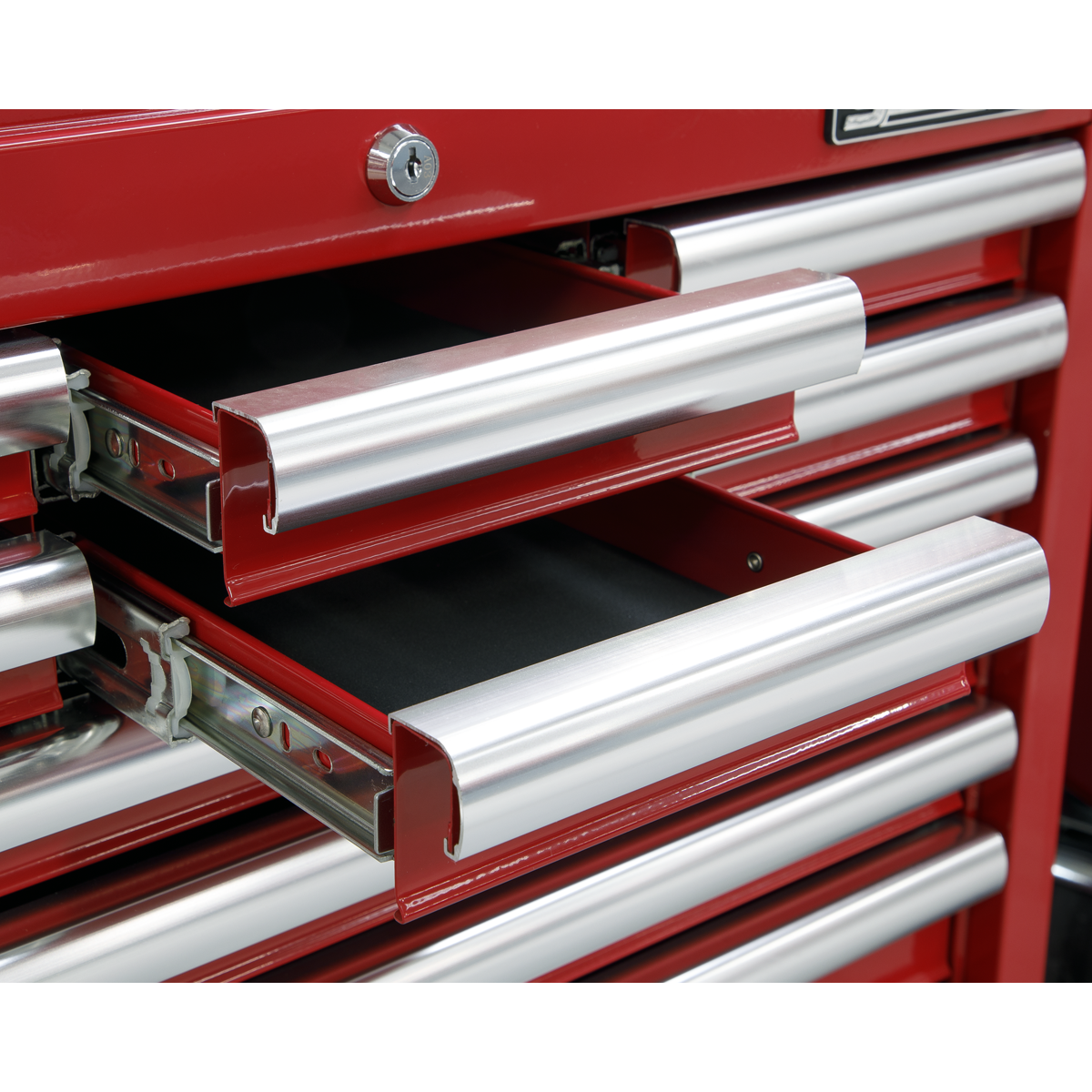 313.16 2026-01-18All heavy gauged steel construction and manufactured with steel inner walls for extra strength and durability. Heavy-duty 45mm ball-bearing drawer slides provide superior performance and carry heavier loads. Full height rear locking mechanism, locks full-length drawers in multiple locations. Added security provided by tumbler lock, supplied with two folding keys. Rust and solvent resistant powder coat paint finish. Each drawer features aluminium drawer pulls and non-slip liners.