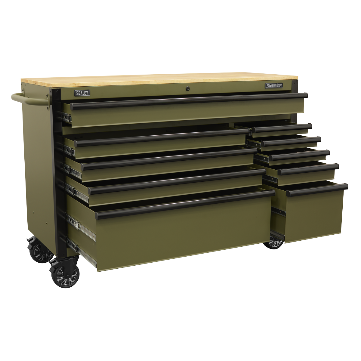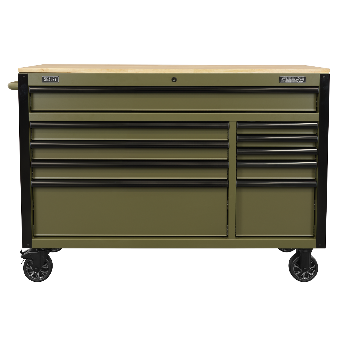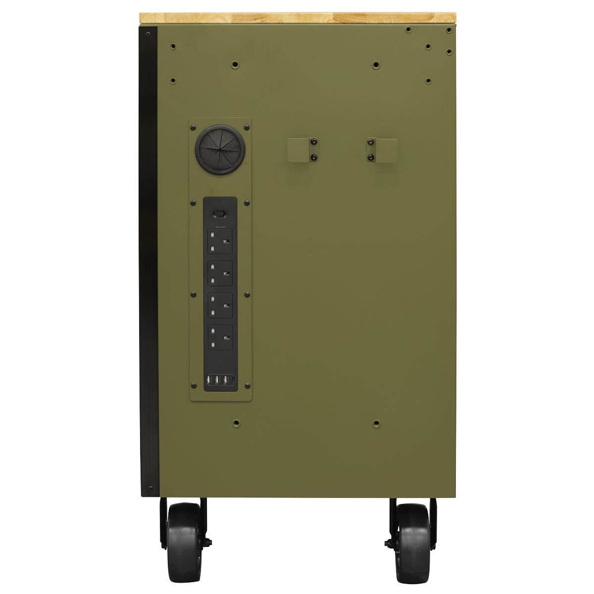 1103.95 2026-03-15All heavy-duty steel construction and manufactured with steel inner walls for extra strength and durability. Power bar features 4 x 230V sockets, 3 x 5V (2.4A) USB sockets and 1 x 5V (3A) USB-C socket. Ten full height rear locking mechanism, soft close drawers with heavy-duty 45mm ball-bearing slides that provide superior performance. Each drawer features stylish black anodized drawer pulls plus pre-cut non-slip liners. Fitted with 18mm thick rubberwood worktop and four Ø125mm PP wheels with black chrome effect alloys, two castors with quick release anti-rotation toe locks and two fixed wheels. Side handle for added comfort when manoeuvring around the workplace. Power cord storage hanger. Supplied with two folding keys.