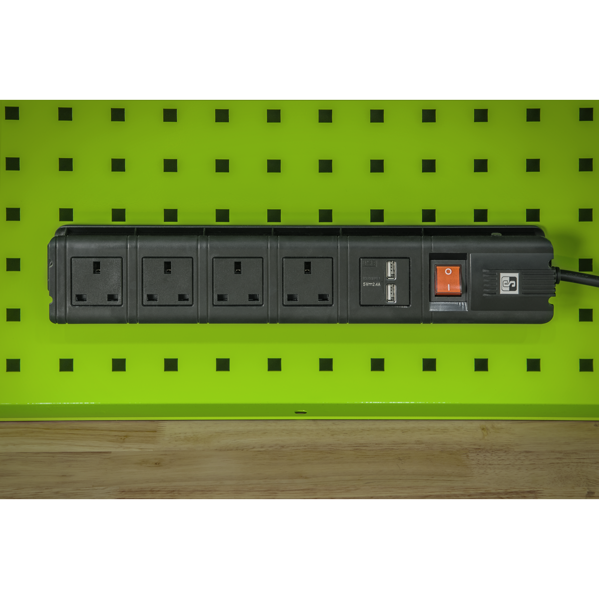 1463.95 2025-12-01Use as part of a complete garage storage system. All heavy-duty steel construction and manufactured with steel inner walls for extra strength and durability. Two heavy-duty riser drawers with 45mm ball-bearing drawer slides provide superior performance, suitable for heavier loads. Full height rear locking mechanism locks smooth running soft close drawers in place. Each drawer features stylish black anodized heavy-duty drawer pulls plus pre-cut non-slip liners. Tough industrial powder coated finish. Hutch style topchest features gas struts, single full-length powder coated shelf and pegboard back for easy tool storage. Pegboard is compatible with all Sealey TTS hooks. Hutch is supplied with a power bar (4 x 230V, 2 x 5V 2.4A USB sockets) which can be easily installed to suit user, and also features LED lights. Hutch and riser drawer set supplied together. Only for use with Sealey AP6115BE 1549mm Mobile Trolley. Supplied with two folding keys. Extra assistance must be provided at the delivery point to help its safe delivery, delivered on wooden pallet.