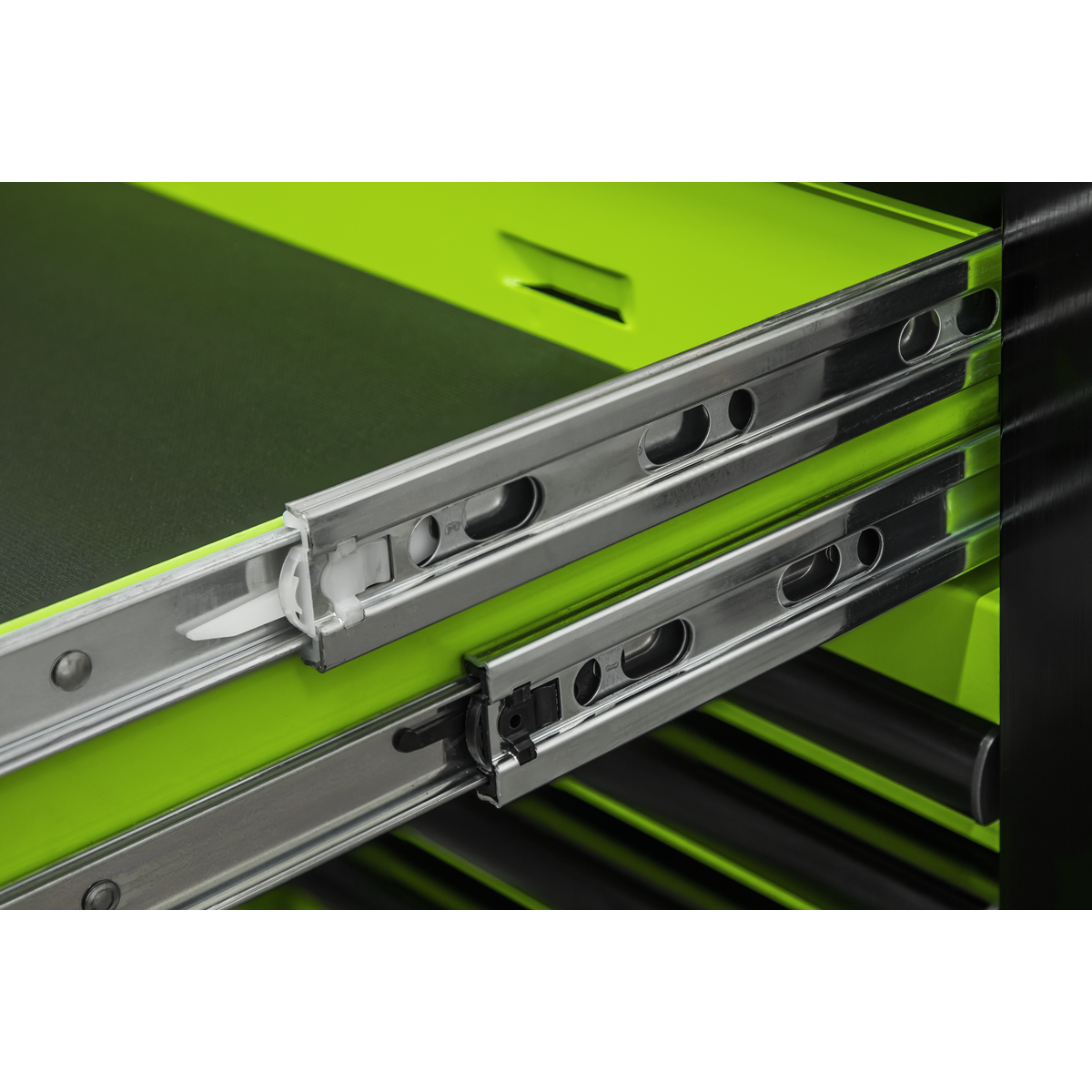 2909.95 2026-02-07All heavy-duty steel construction and manufactured with steel inner walls for extra strength and durability. Full height rear locking mechanism, locks smooth running soft close drawers in place. Hutch style top chest features gas struts, single full-length powder coated shelf and pegboard back for easy tool storage. Pegboard is compatible with all Sealey TTS hooks. Hutch is supplied with a power bar (4 x 230V, 2 x 5V 2.4A USB sockets) which can be easily installed where needed as well as Sealey LED light strips. 15 Full height rear locking mechanism, soft close drawers with heavy-duty 45mm ball-bearing drawer slides that provide superior performance. Each drawer features stylish black anodized drawer pulls, plus pre-cut non-slip liners. Fitted with four Ø152mm PP wheels with black chrome effect alloys, two castors with quick release anti-rotation toe locks and two fixed wheels. This item is heavy. Extra assistance must be provided.