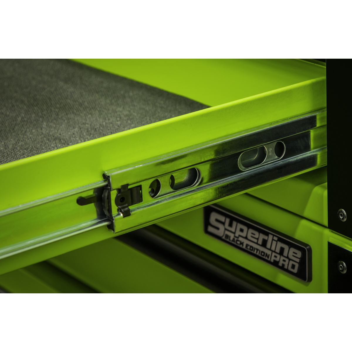 3062.95 2025-12-03All heavy-duty steel construction and manufactured with steel inner walls for extra strength and durability. Full height rear locking mechanism, locks smooth running soft close drawers in place. Hutch style top chest features gas struts, single full-length powder coated shelf and pegboard back for easy tool storage. Pegboard is compatible with all Sealey TTS hooks. Hutch is supplied with a power bar (4 x 230V, 2 x 5V 2.4A USB sockets) which can be easily installed where needed as well as Sealey LED light strips. 15 Full height rear locking mechanism, soft close drawers with heavy-duty 45mm ball-bearing drawer slides that provide superior performance. Each drawer features stylish black anodized drawer pulls, plus pre-cut non-slip liners. Fitted with four Ø152mm PP wheels with black chrome effect alloys, two castors with quick release anti-rotation toe locks and two fixed wheels. This item is heavy. Extra assistance must be provided.