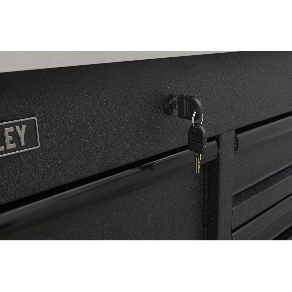 1769.95 2025-11-10All heavy-duty steel construction and manufactured with steel inner walls for extra strength and durability. Heavy-duty 45mm ball-bearing drawer slides provide superior performance, suitable for heavier loads. Full height rear locking mechanism, locks smooth running soft close drawers in place. Rust and solvent resistant black crinkle effect finish. Fitted with six Ø125mm PP wheels with black chrome effect alloys, two fixed, two swivel and two swivel with brakes. Each drawer features stylish black anodized heavy-duty drawer pulls plus pre-cut non-slip liners. Power tool charging drawer fitted with 4x 230V, 1x USB-C and 3x USB. Mounting points to fit additional four gang power bar - Model No. EL34USBB (not included). Stainless steel 'flip-top' split equally into 2-sections providing a work surface and additional storage. Two cylinder locks allow drawers and power tool charging drawer to be locked separately.
