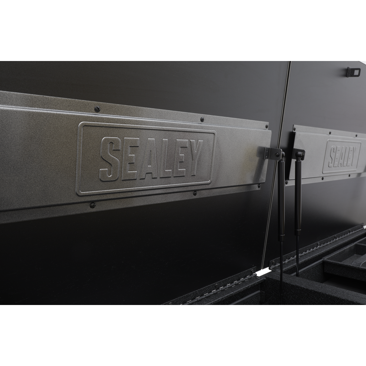 1769.95 2025-12-21All heavy-duty steel construction and manufactured with steel inner walls for extra strength and durability. Heavy-duty 45mm ball-bearing drawer slides provide superior performance, suitable for heavier loads. Full height rear locking mechanism, locks smooth running soft close drawers in place. Rust and solvent resistant black crinkle effect finish. Fitted with six Ø125mm PP wheels with black chrome effect alloys, two fixed, two swivel and two swivel with brakes. Each drawer features stylish black anodized heavy-duty drawer pulls plus pre-cut non-slip liners. Power tool charging drawer fitted with 4x 230V, 1x USB-C and 3x USB. Mounting points to fit additional four gang power bar - Model No. EL34USBB (not included). Stainless steel 'flip-top' split equally into 2-sections providing a work surface and additional storage. Two cylinder locks allow drawers and power tool charging drawer to be locked separately.