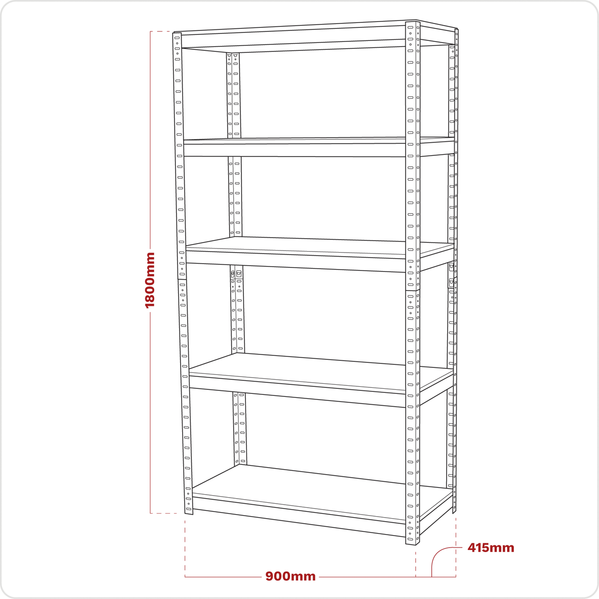151.75 2026-05-01Fully painted steel frame with five MDF shelves. 500kg Capacity per level giving a maximum capacity of 2500kg per rack. No nuts and bolts means no tools required to assemble. Clips together in minutes. 2-Piece uprights allow use as a single bay rack or split into two separate shelf systems or workstations.