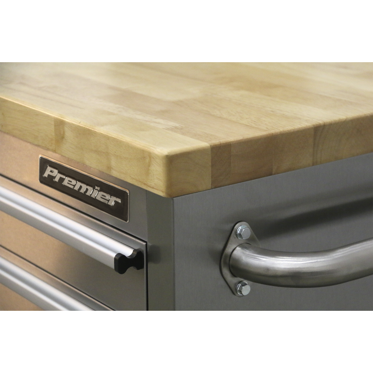 1463.95 2025-12-21Anti-fingerprint stainless steel construction. Supplied with a 38mm thick wooden worktop. 10 Drawers with a 45kg capacity each. Each drawer features aluminium pull handles and non-slip liners. Side storage cupboard with shelf and pegboard inlay. Four large castor wheels, two fixed and two swivel that include brakes. Supplied with a heavy-duty side handle for comfort and control when manoeuvring. All supplied with locks and two keys. Some simple assembly required.
