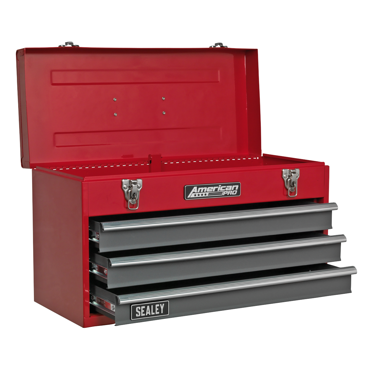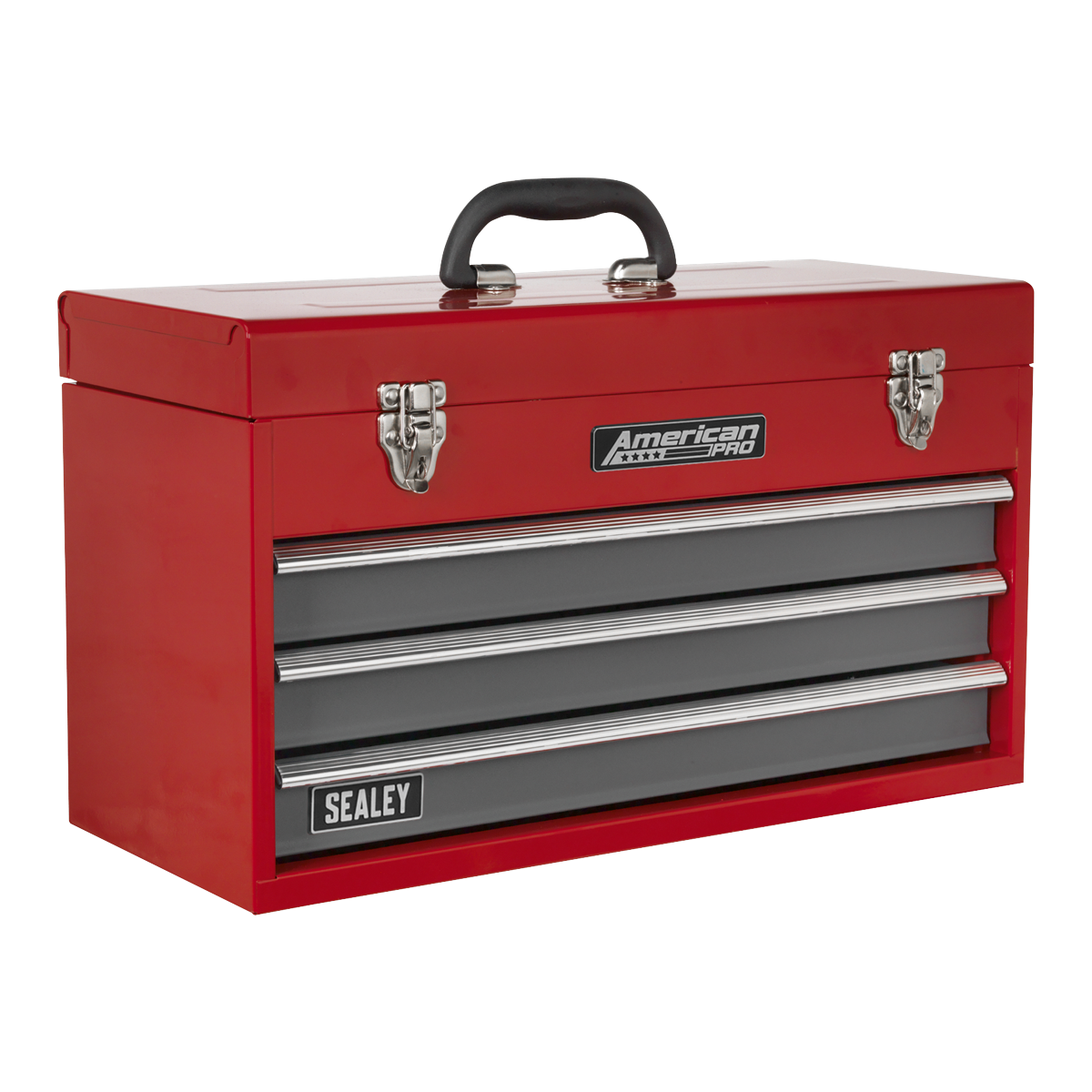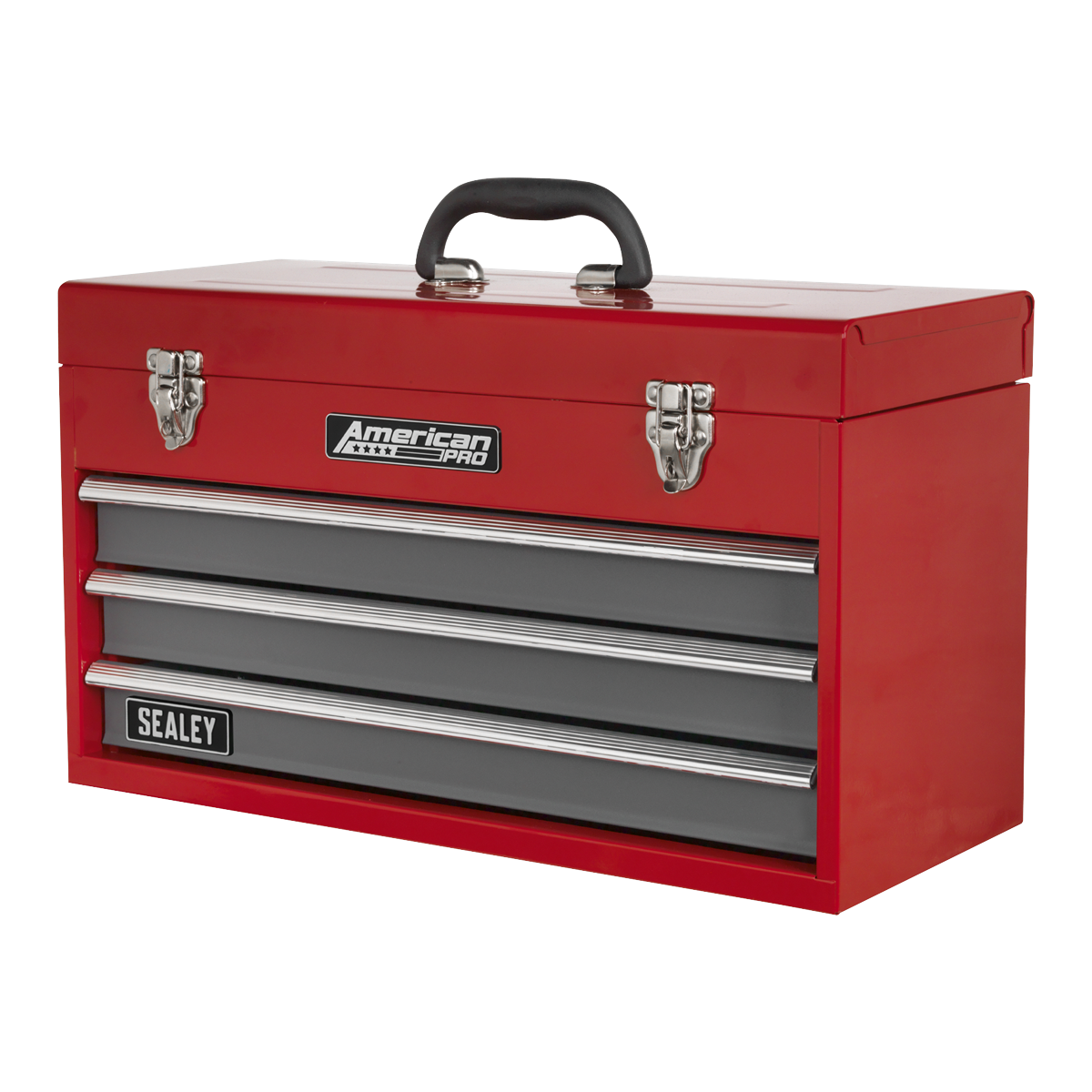 98.95 2025-12-02The storage capacity of a tool chest coupled with the versatility of a carry-type toolbox. Features tough composite top handle, smooth 25mm ball-bearing drawer slides and two strong locking hasps which can be locked using a padlock (not included).