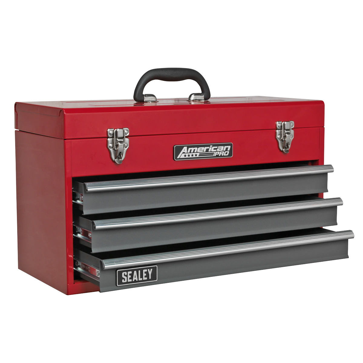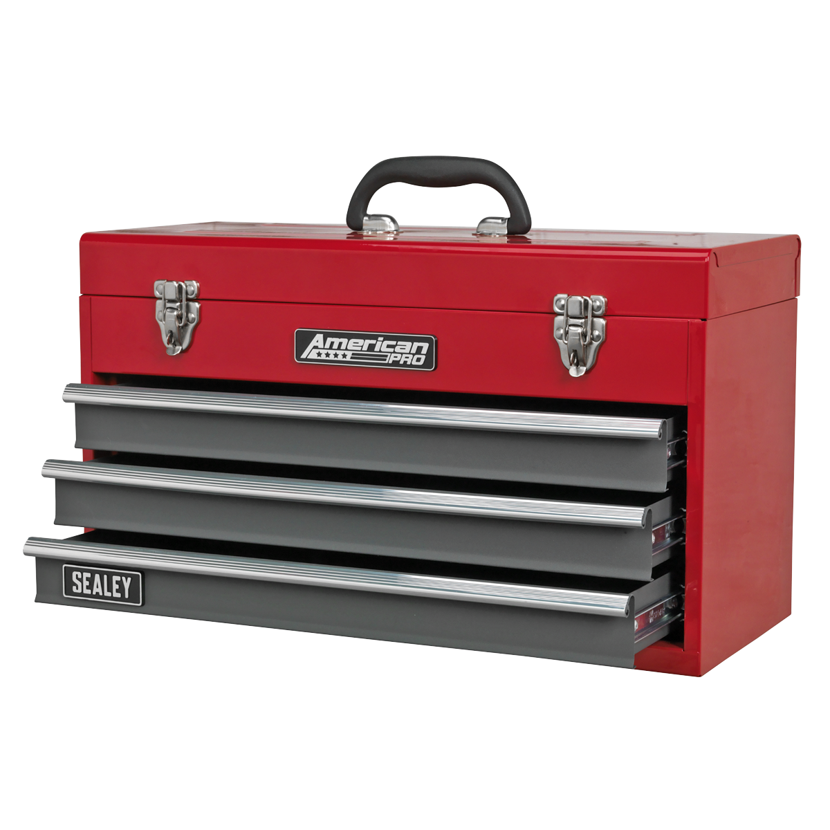 103.64 2026-03-15The storage capacity of a tool chest coupled with the versatility of a carry-type toolbox. Features tough composite top handle, smooth 25mm ball-bearing drawer slides and two strong locking hasps which can be locked using a padlock (not included).