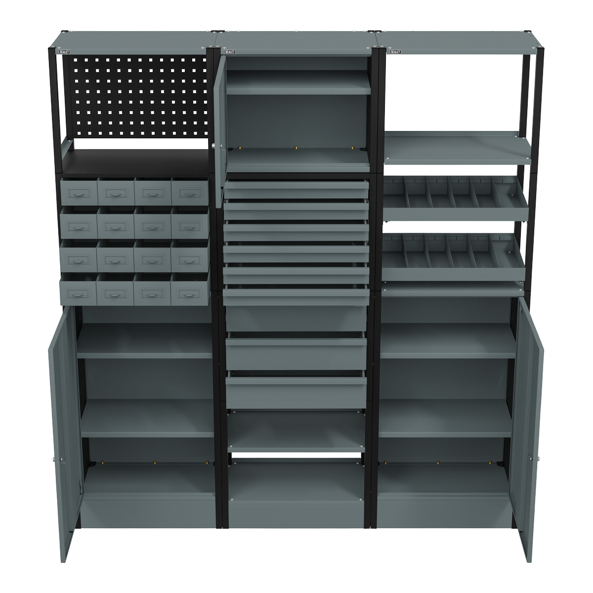 1031.95 2026-05-06The Sealey modular storage system has a heavy-duty, rust resistant textured powder coat finish. Simply choose your base, middle and top units and push together using nylon connectors to create versatile storage for the workshop, garage, home or office. All drawers have ball-bearing drawer slides for smooth operation and cupboard doors are fitted with spring loaded hinges allowing them to be fitted either side to suit. Buy individually (see specific Model No. for full spec) or as one of our pre-created combos.