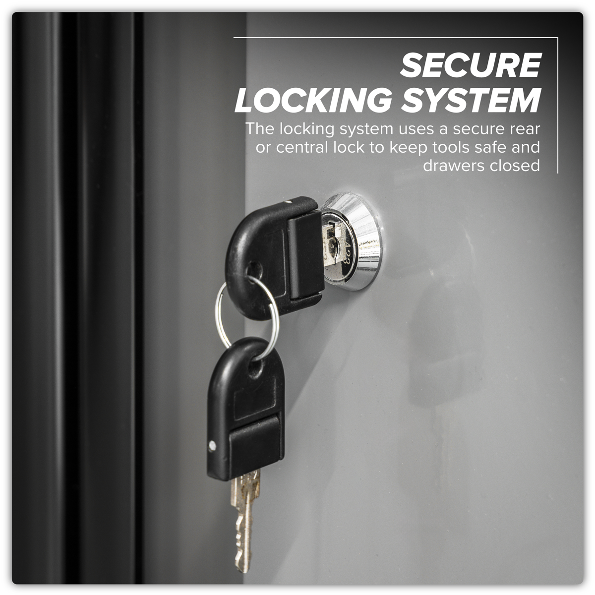 417.55 2026-02-13Use as part of a complete garage storage system or as an individual storage unit. Five drawer mobile cabinet. All drawers fitted with soft close ball-bearing slides. Four swivel castors with one brake. Black anodized aluminium drawer pulls. High quality lock with two keys.