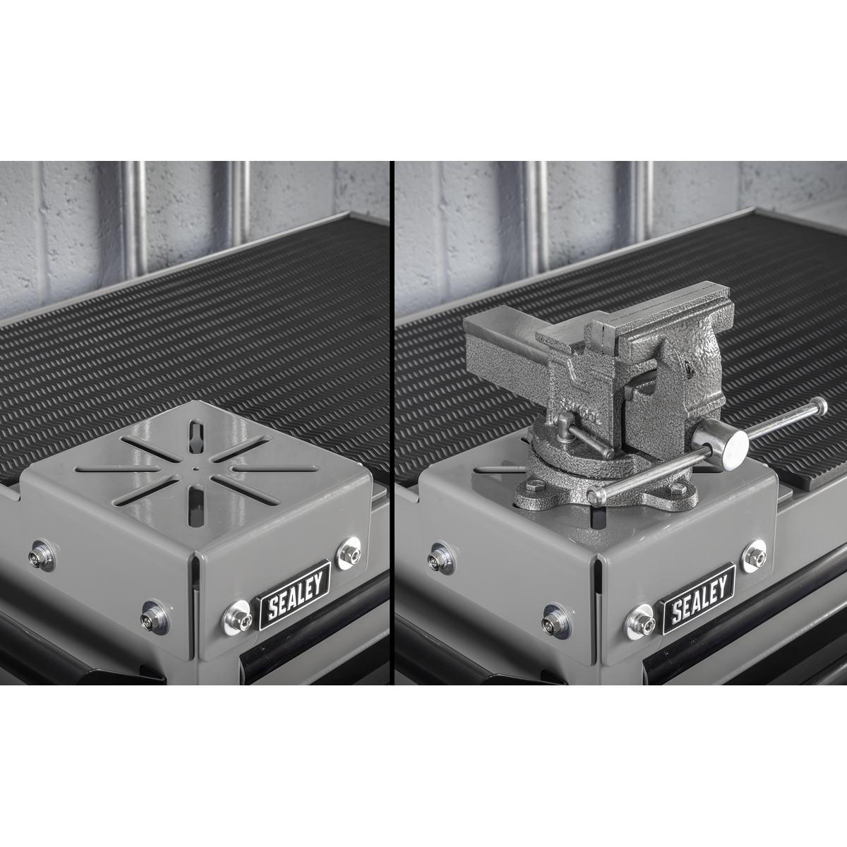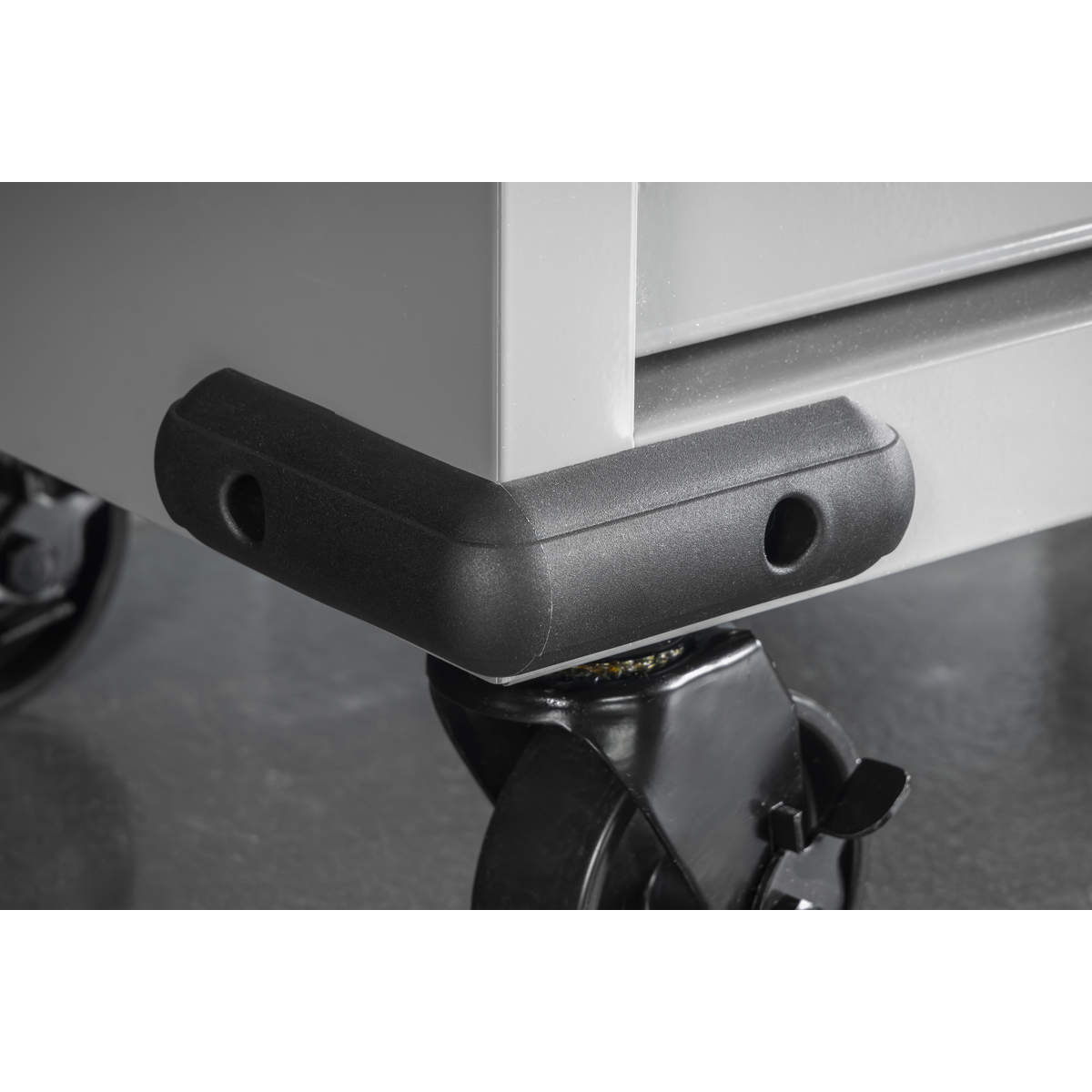 431.95 2026-05-17Heavy gauged steel frame with reinforced inner walls for durability. Integrated vice base for direct clamping and material handling. Trigger lock prevents drawer opening during movement. Ø114mm Castors for easy movement. Powder coated finish resists rust and solvent spills. Plastic bumpers reduce impact damage in busy workshops. Full height rear locking mechanism locks full-length drawers in multiple locations. Supplied with two keys. Includes a 10mm thick top mat.