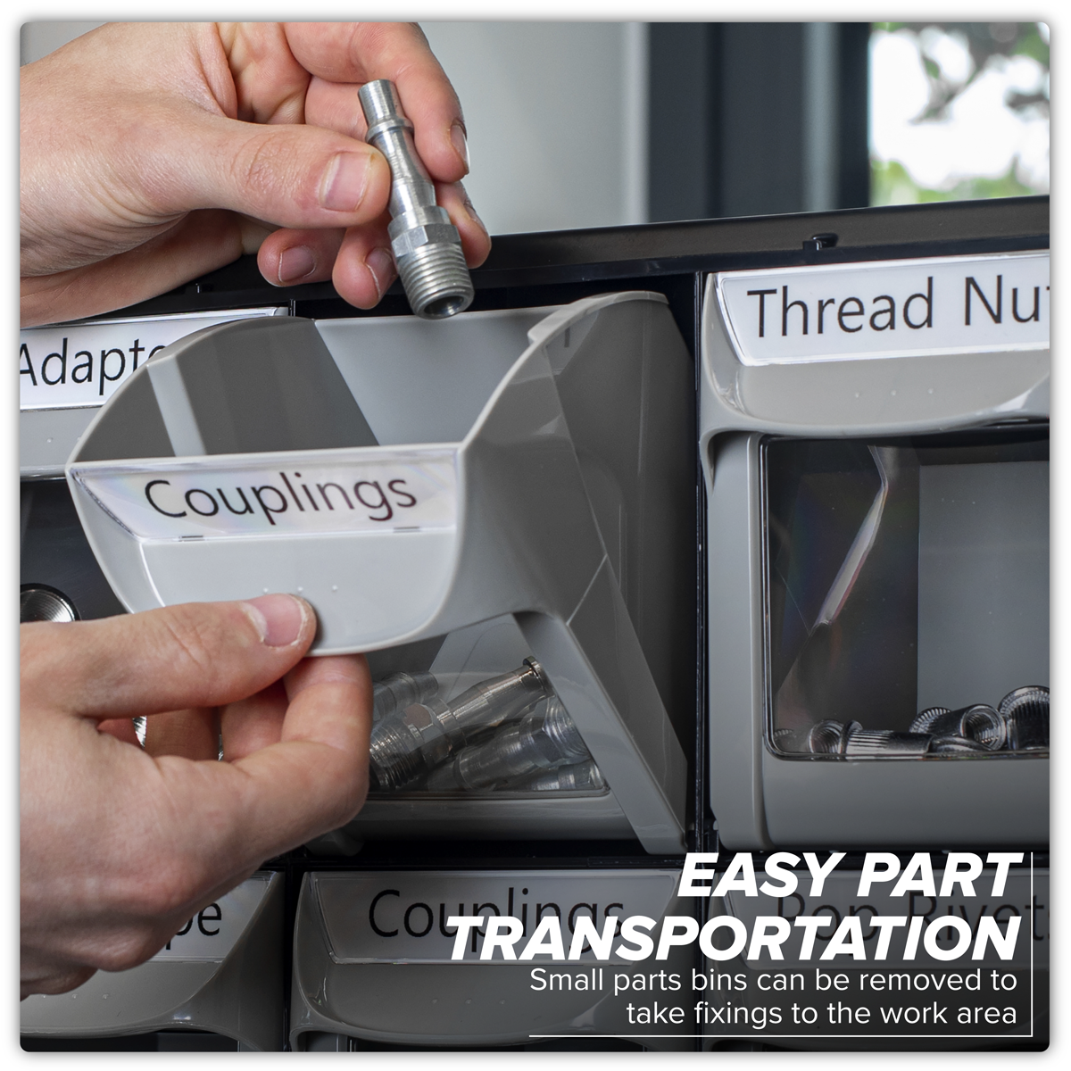 575.95 2025-12-20Freestanding rotating storage system featuring 144 small parts bins. Ideal for workshop or stores use. Fitted with roller bearings allowing 360° movement.