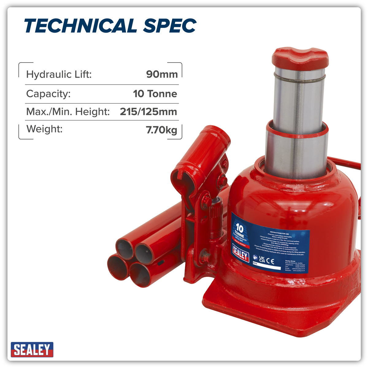 Instructions for the Sealey BJ10LE Low Profile Telescopic Bottle Jack 10 Tonne