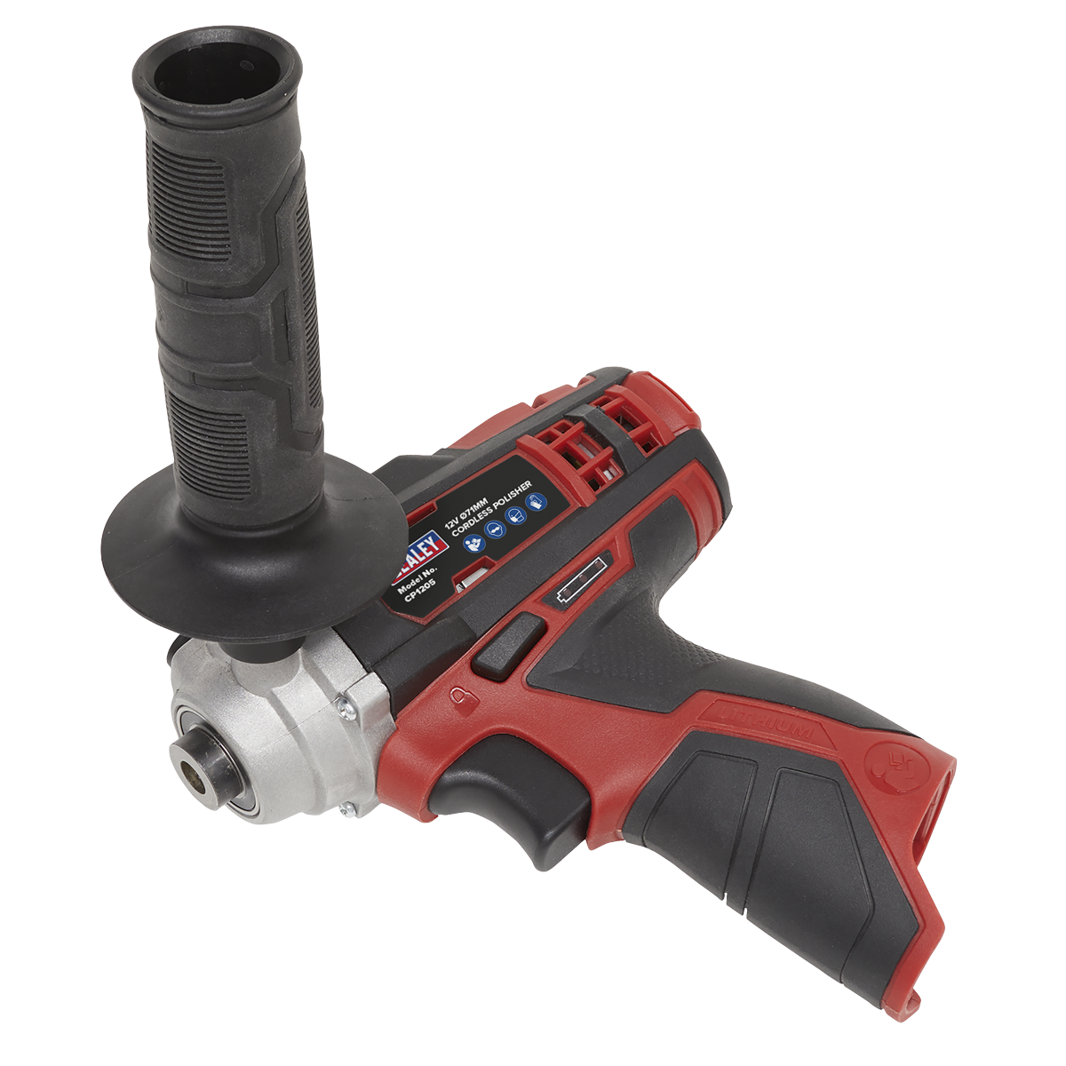 43.10 2026-02-19Compact, lightweight cordless polisher. Comfortable composite housing with soft grip to reduce vibration. 2-Speed settings and variable speed control trigger make this polisher easy-to-use. Integral LED battery level indicator. Supplied with side handle, two foam pads and one wool polishing pad. Requires Model No. CP1200BP 12V 1.5Ah Lithium-ion Battery and Model No. CP1200MC Battery Charger.