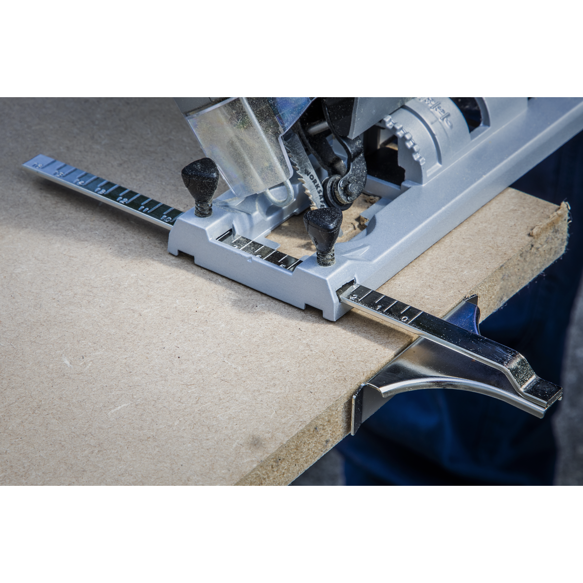 53.84 2026-03-27Powerful, lightweight cordless jigsaw suitable for cutting wood, board, plastic and steel. Comfortable composite housing with soft grip for added comfort. Toolless blade change system. Variable speed control trigger switch 0-2400spm. Features dust blow and extraction function, and parallel guide. Built-in LED worklight. Four pendulum settings. 2-Stage operation switch for added safety. Supplied with hex key and wood cutting blade. Requires compatible 20V battery and mains charger, sold separately.