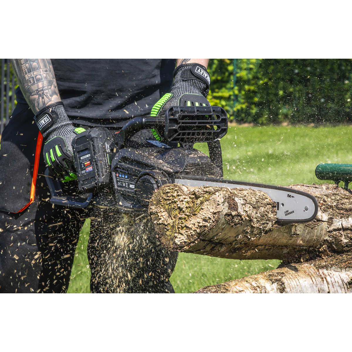 283.76 2026-02-04Part of the SV20 Series designed for the professional, offering heavy-duty, high performance, durable tools with lightweight composite designs for superior control and comfort. Operates using 2 x 20V batteries from the Sealey SV20 Series (batteries must be of the same Ah rating). Tool-less chain tensioning and built-in chain lubrication. 2-Stage operation and automatic cut-off for safety whilst working. Oregon chain and bar set.