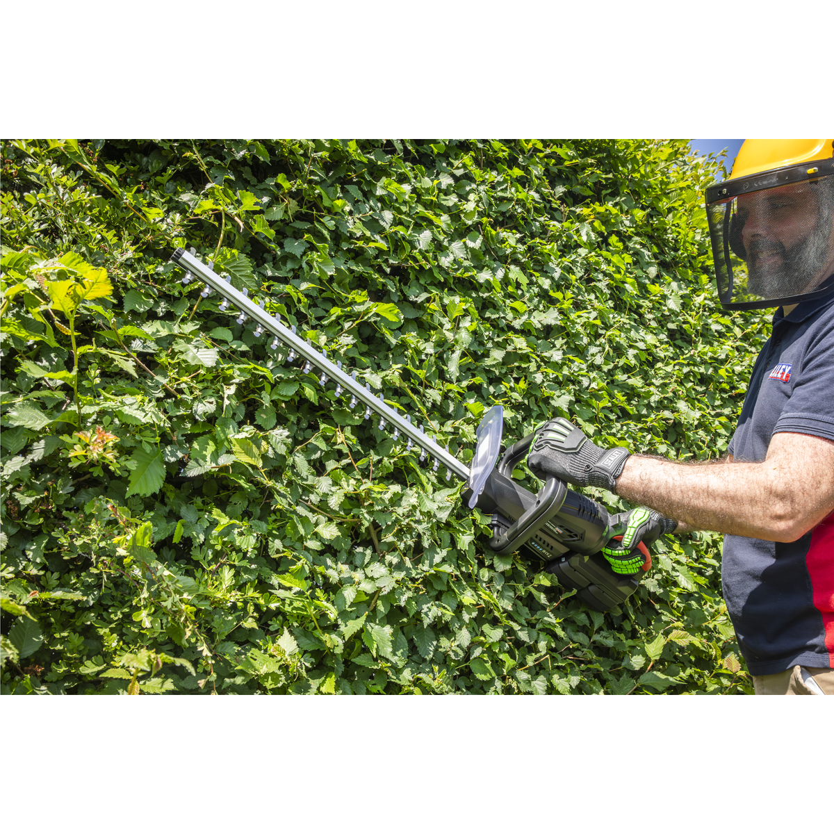 204.55 2026-05-26Part of the SV20 Series designed for the professional, offering heavy-duty, high performance, durable tools with lightweight composite designs for superior control and comfort. Operates using 2 x 20V batteries from the Sealey SV20 Series (batteries must be of the same Ah rating). 90° Rotating handle making it easier to get to the desired angle. Weighing only 3.2kg makes prolonged working easy. 24mm Cutting diameter suitable for the trimming even the thickest of hedge branches. Fitted with a hand shield.