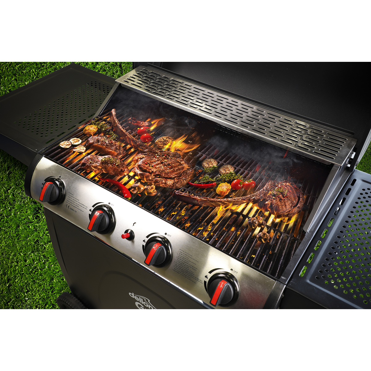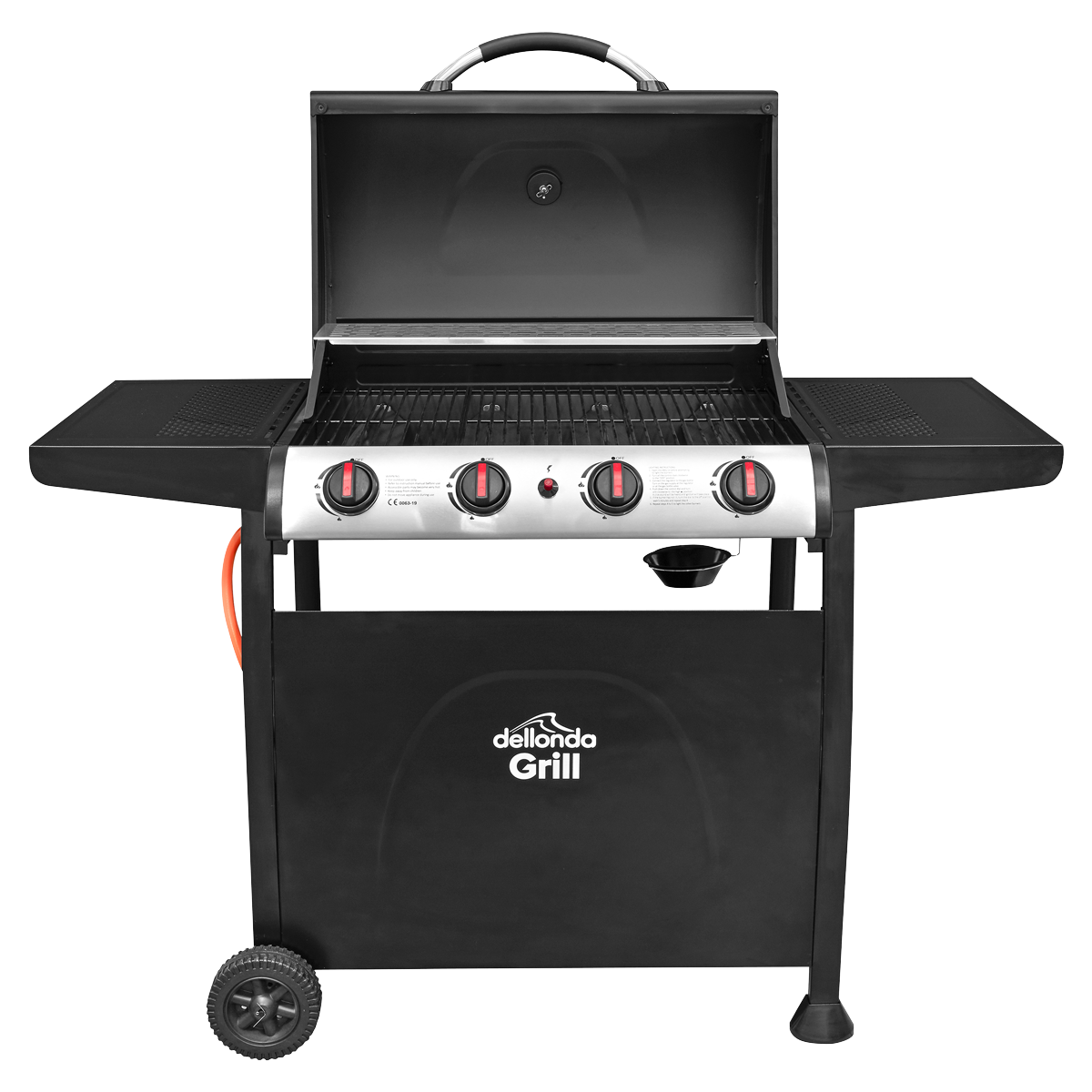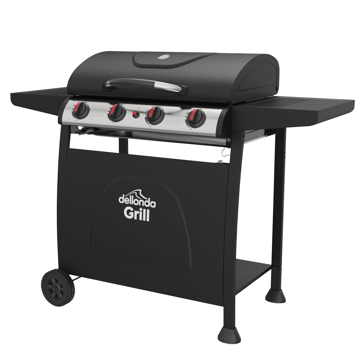 169.78 2026-04-16Gas BBQ with four stainless steel burners. Built-in thermometer enables you to easily keep track of your cooking temperature. Piezo ignition ensures a safe and easy start-up every time. High quality steel cooking grates with a gloss enamel coating. Features two side shelves giving extra room for preparation. Warming rack frees up space on the grill whilst keeping your food warm after cooking. Supplied with regulator and hose assembly for use with propane patio gas bottles. Features two 6" polyurethane wheels for easy manoeuvrability. Some simple assembly is required. Dellonda BBQ Cover Model No. DG20 (supplied separately) is a perfect fit for this BBQ.