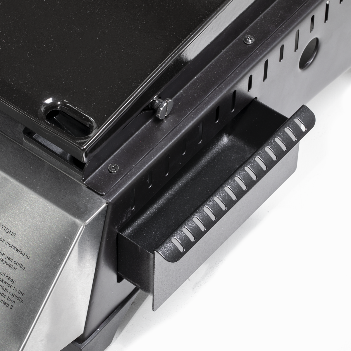 224.23 2026-02-09Plancha bbq grill with three stainless steel burners. Use in the garden, travel or camping trips. Plancha cooking uses low-fat, high-heating cooking with no flare-ups and is ideal for all kinds of food such as eggs, pancakes, sausages, salmon, steak, vegetables and so much more. Piezo ignition ensures a safe and easy start-up every time, just press the button, no matches needed. Supplied with regulator and hose assembly for use with propane patio gas bottles.