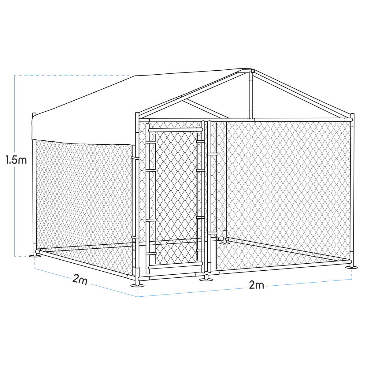 226.78 2026-01-29Provides a safe enclosure for your pet with enough room for exercise or play. Heavy-duty frame is quick and easy to build with spring loaded buttons and a roof cover that attaches securely with toggles. Supplied with weatherproof UV resistant cover that protects pets from rain and provides shade. Manufactured from high quality rust-resistant galvanised steel, suitable for all weather conditions. Wide opening door makes feeding time or cleaning the kennel easier. Steel chain link fencing and lockable door ensure the kennel remains secure. Perfect for dogs and other animals.