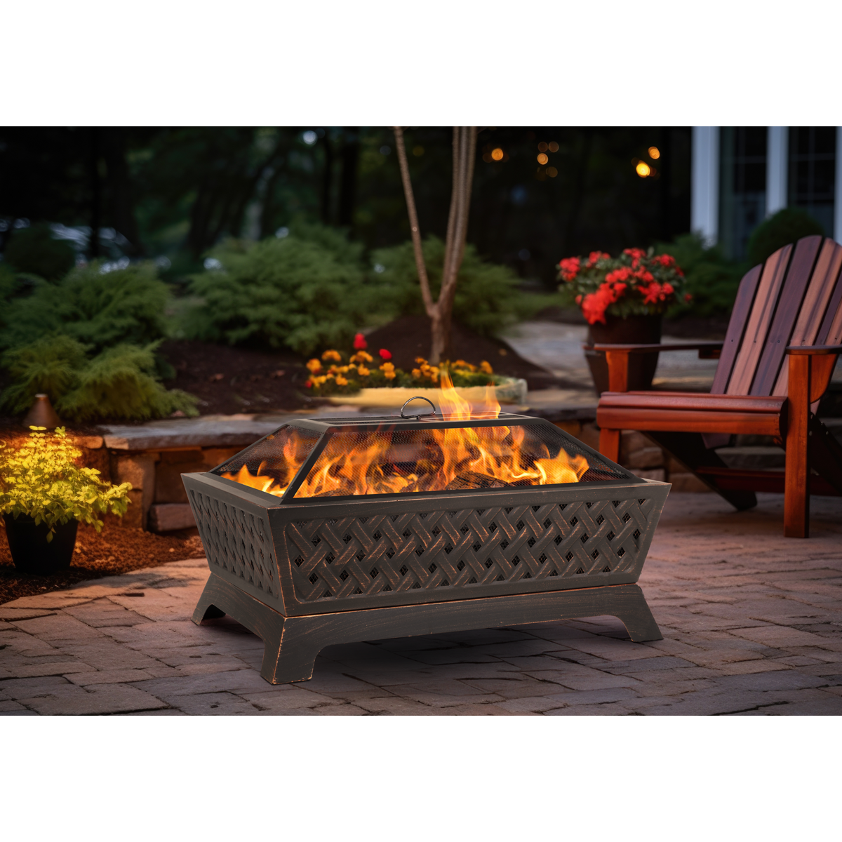 94.48 2025-11-14Contemporary style rectangular fire pit is perfect for relaxing outdoors with family and friends. Manufactured from durable steel (1mm) with a bronzed finish. Includes mesh safety screen to prevent embers and sparks flying. Suitable for use with untreated wood and logs. Supplied with fire poker. Some simple assembly required.