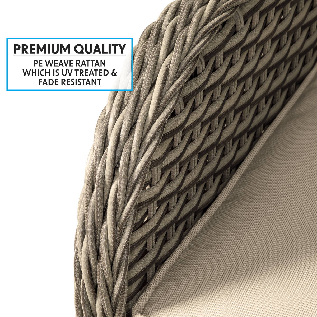 290.98 2025-11-22These modern rattan dining chairs look great in any outdoor space from large gardens to small patios and balconies. The premium quality PE weave rattan material has been UV Treated, is fade resistant and can be used outside all year round. The cushion covers are easily removable and can be hand washed, keeping the maintenance of your furniture as low as possible. Stainless steel leg supports prevent damage during movement and keep your furniture sturdy during use.