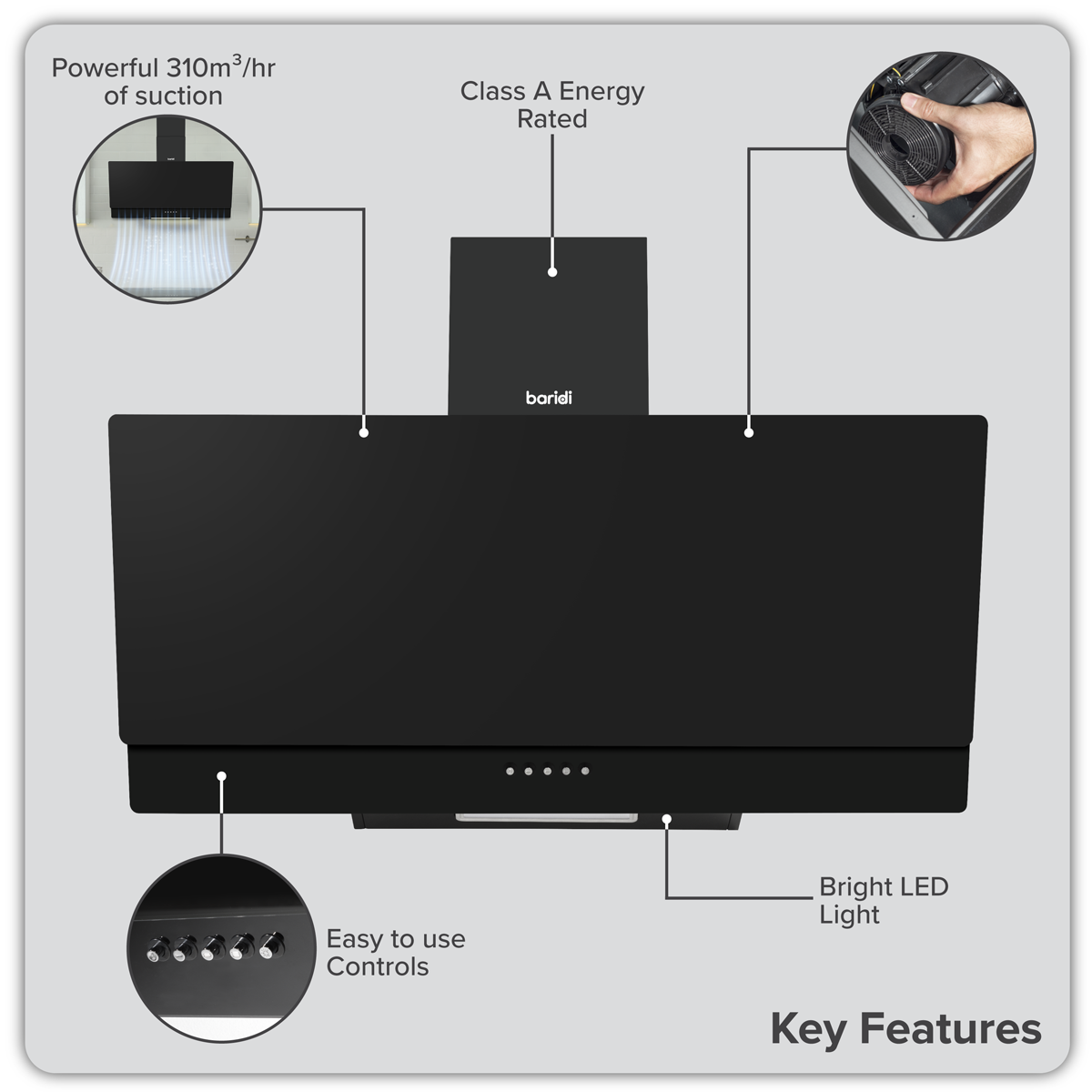 136.78 2026-01-17Save money with a class A extractor hood compared to the class B and C hoods. Higher efficiency means less noise and a more powerful fan without the need for higher electricity bills. 60 Watts of power with 310m³/hr of suction is more than enough to freshen your kitchen and keep cooking fumes out of the rest of your house. With three fan speeds you're in full control. Beautiful look, this elegant yet modern wall hood delights, effortlessly bringing style to any kitchen type. Supplied with two carbon filters to keep your air fresh and allow you to recirculate rather than use external ducting. Must be installed by a qualified electrician. No ducting kit supplied.