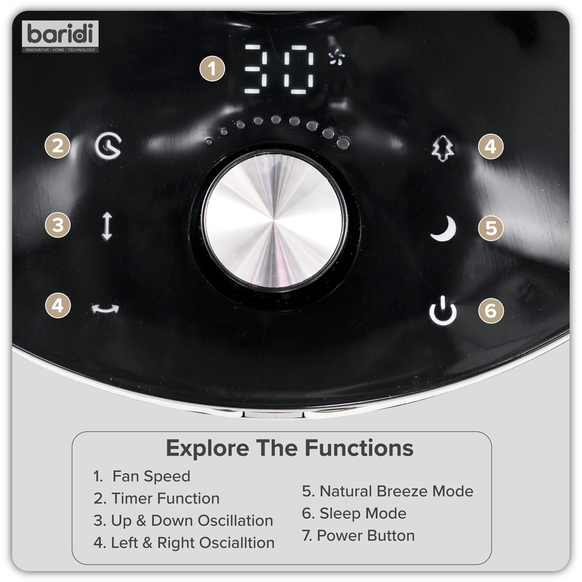 125.98 2026-01-13The fan is designed using the latest DC motor technology, for ultra-quiet operation. With 30 fan speeds and three breeze modes, you can choose the airflow that suits your needs. Multi-directional oscillation for dynamic air circulation. 90° Vertical and horizontal swing ensures optimal air circulation with a 20m reach. Built-in 12hr timer with boost function and automatic shut-off. You can pair this fan with a heater or AC unit for all-year-round comfort. Lightweight, modern design ideal for contemporary spaces. Supplied with captive touch control function and a remote ensuring easy operation.