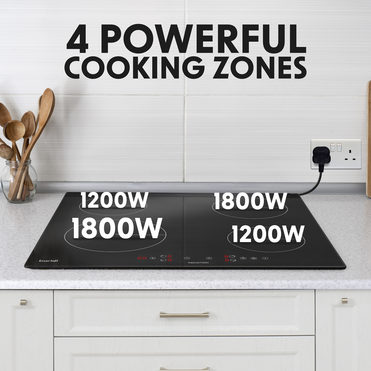 151.18 2025-11-04This induction hob has a total power output of 6800W split across four independently controllable zones. Easily control the cooktops settings with a press of your finger, the intuitive touch controls have a safety lock. Timer setting ensures full control while cooking. Integrated boost function enables you to increase the power on the front left zone by up to 20%. Induction hob heating is much faster and more efficient than gas or ceramic equivalents. Induction hobs heat using magnetic fields, creating instant heat in any iron, stainless steel or alloy pan. Because induction hobs only heat the pan, you waste much less electricity, saving you money. Unlike gas and ceramic hobs, induction surfaces also cool much quicker after use.