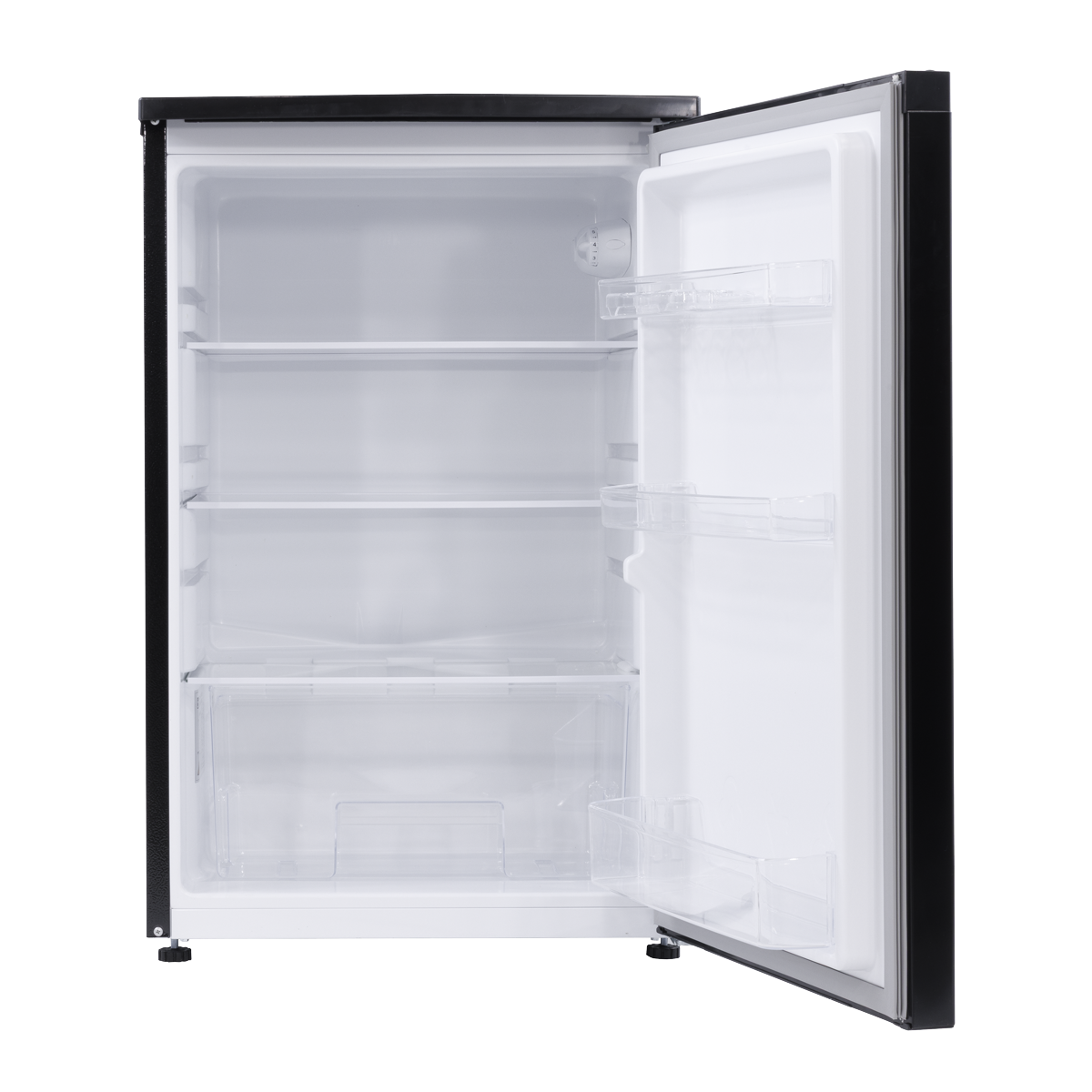 197.08 2026-05-0355cm Wide larder fridge offers a 130L capacity, perfect for smaller households or as an additional fridge, accommodating a variety of fresh food and beverages. Supplied with three sturdy, easy-to-clean glass shelves that can be adjusted to different heights, making it simple to store larger items. Runs at a maximum 41dB and Energy Efficiency Class E helps keep costs down. Includes a spacious crisper drawer at the bottom, perfect for keeping fruits and vegetables fresh and well-organized. Features a reversible door to suit the layout of your kitchen, bar, office or restaurant.