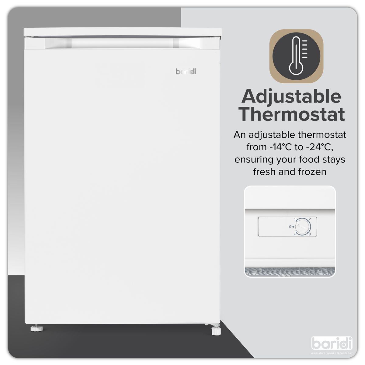 188.98 2026-01-0355cm Wide freezer offers an 85L capacity allowing you to store up to four bags of food shopping. A mechanical thermostat allows the temperature to be set. Comes with a 4-Star Freezer rating for its ability to maintain a temperature of -18℃, making it safer for long term storage of frozen goods. Runs at a maximum 39dB and Energy Efficiency Class E helps keep costs down. Features a reversible door to suit the layout of your kitchen, bar, office or restaurant.