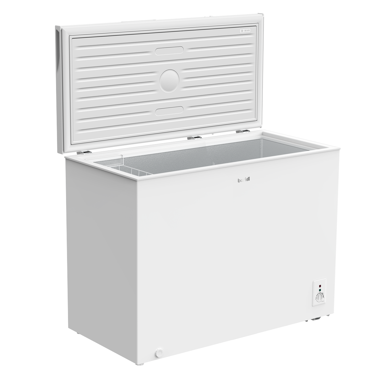 278.98 2026-05-05Stylish white large chest freezer with a 254L capacity. Space for up to 13 bags of food shopping and your batch-cooked meals. The thermostat allows the temperature to be set between -12°C and -24°C. Can also be switched to refrigeration mode for use as a fridge. Runs quietly at a maximum of 39dB and Energy Efficient Class E helps keep costs down. Fitted with a 2.3m power cable. This freezer can run at an ambient temperature as low as -15°C so suitable for garages and outbuildings, even with an uneven floor thanks to its adjustable feet. Features a removable basket for your more commonly used items and a counter balanced lid that, once fully opened, will not close on you.
