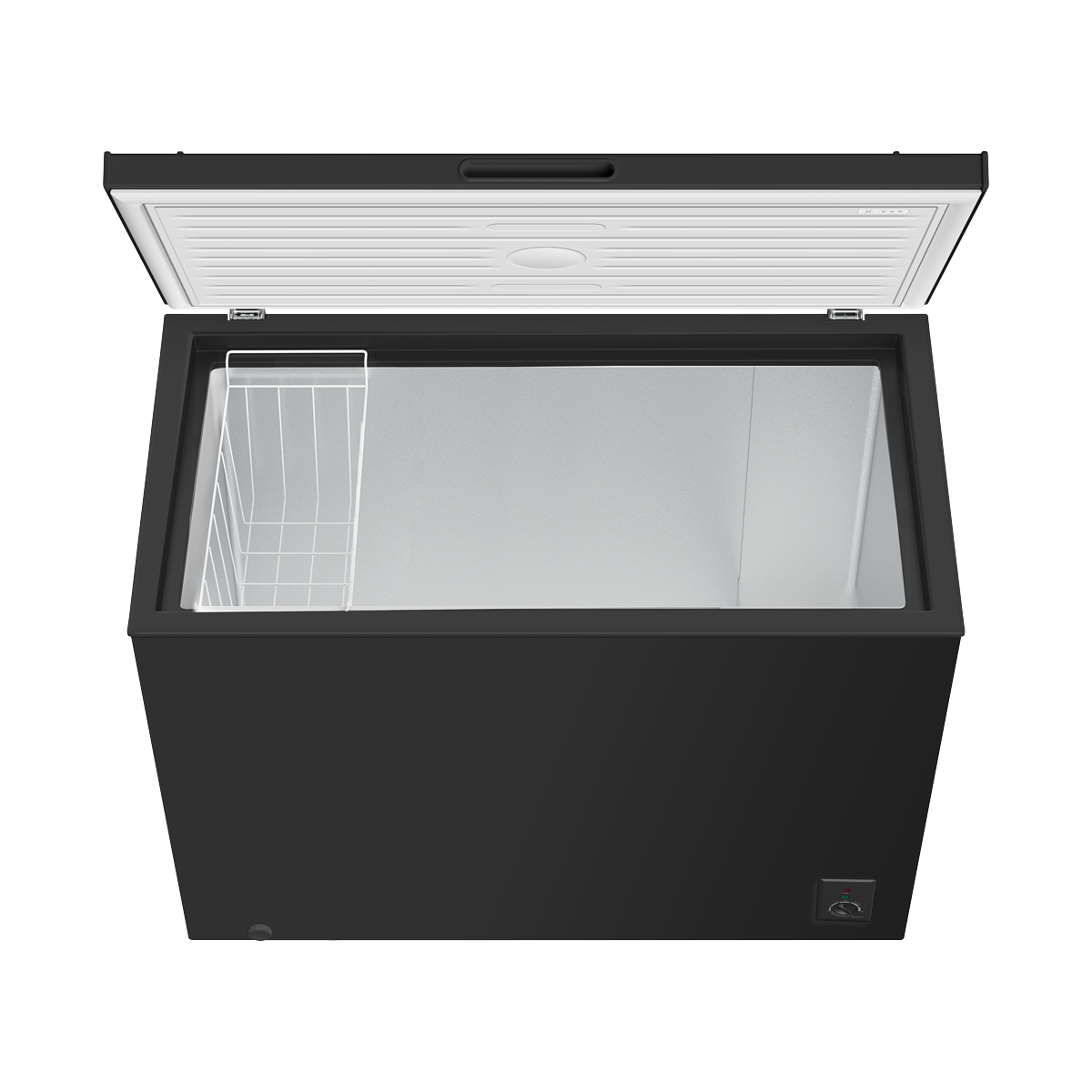 278.98 2026-05-28Stylish black large chest freezer with a 254L capacity. Spacious enough for over 13 bags of food shopping and all your batch-cooked meals. The thermostat allows the temperature to be set between -12°C and -24°C. Can also be switched to refrigeration mode for use as a fridge. Runs quietly at a maximum of 39dB and Energy Efficient Class E helps keep costs down. Fitted with a 2.3m power cable. This freezer can run at an ambient temperature as low as -15°C so suitable for garages and outbuildings, even with an uneven floor thanks to its adjustable feet. Features a removable basket for your more commonly used items and a counterbalanced lid that, once fully opened, will not close on you. Dimensions (W x D x H): 1040 x 555 x 835mm.