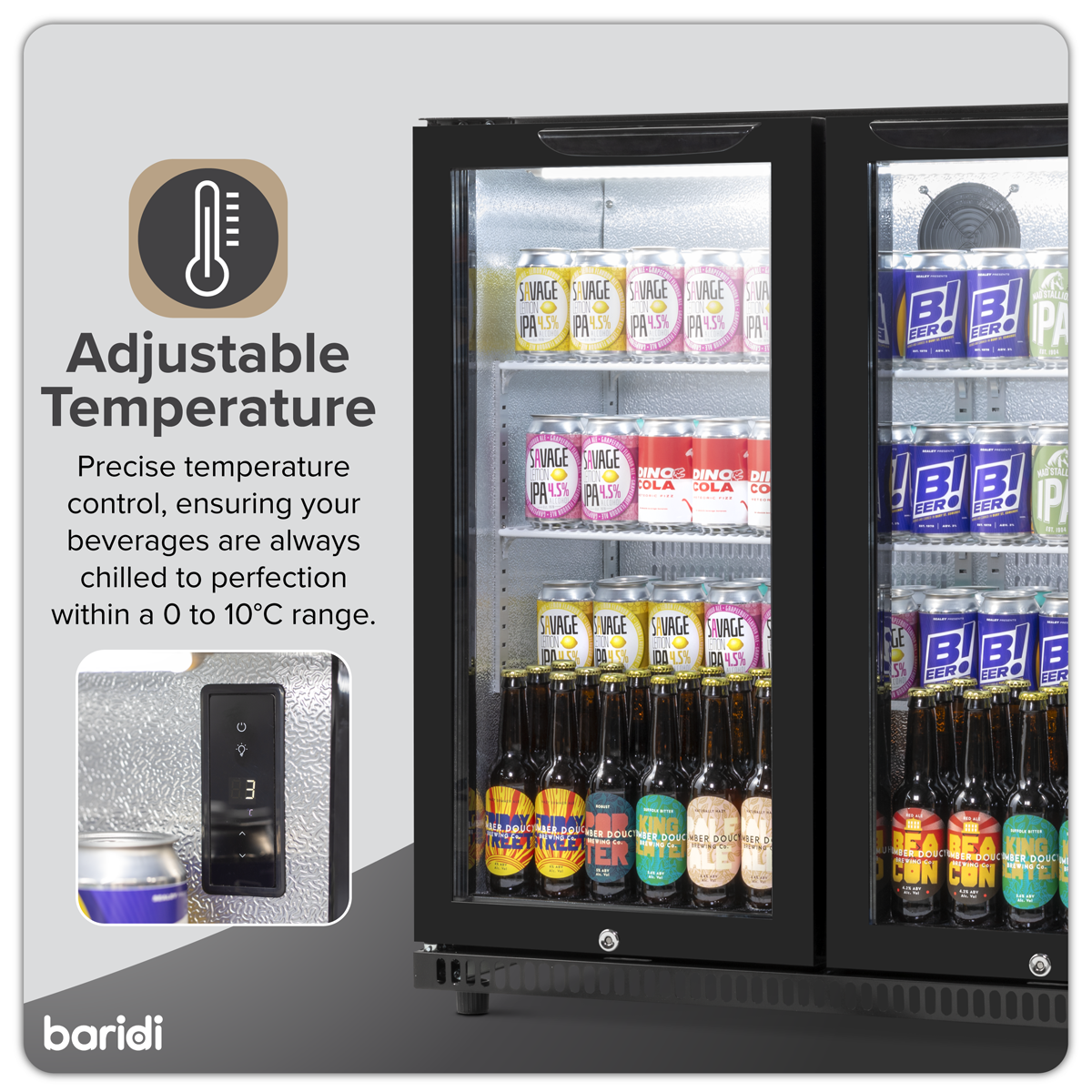 488.08 2026-02-16Holds up to 262 x 330ml cans with its 190L capacity, ensuring ample space for storing drinks or beverages in commercial or domestic settings. Features a security lock to safeguard your drinks and prevent unauthorised access. Self closing, hinged door design allows for easy and quick access to your drinks, also available with sliding doors with Model No. DH273. Suitable for use in both commercial or domestic environments such as bars, restaurants, cafes and kitchens. Double glazed glass doors provide superior insulation helping to maintain optimal temperature and reducing energy consumption.