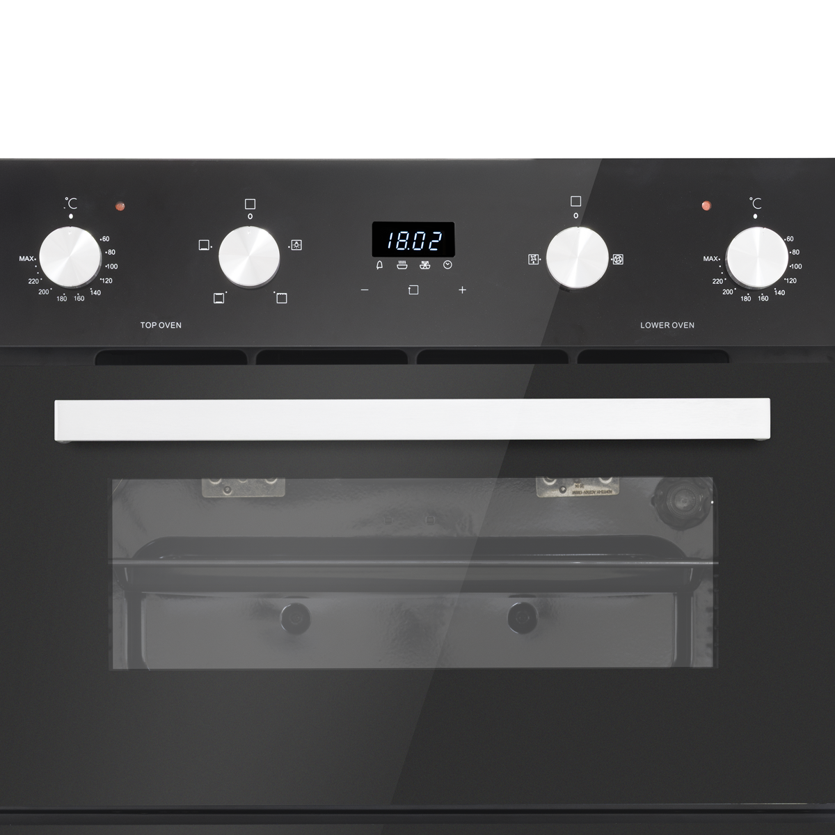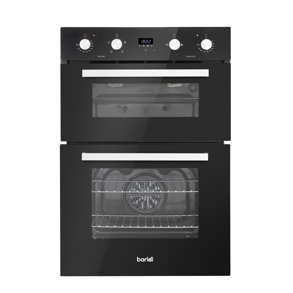 385.48 2025-12-0788L Capacity (31L Top Cavity / 57L Lower Cavity) and consistent temperatures that this oven provides will help you cook the perfect meal every time. The top cavity features four cooking functions and is perfect conventional oven and grill use while the bottom cavity features two cooking functions including defrost mode. Black glass finish adds a modern touch to your kitchen. Designed to complement Baridi Cooker hoods and hobs as well as our range of wine coolers and drinks fridges. Includes 2 x chrome grill racks and one baking tray as standard.