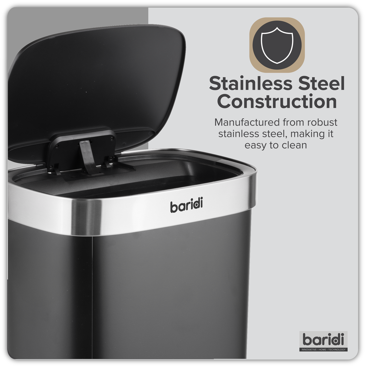 107.08 2025-12-19Spacious 80L capacity is ideal for home and office use. Motion sensor opens the bin automatically for hygienic, touch free waste disposal. Powered by 6 x AA batteries (not included), keeping your floorspace clean. Ring retainer keeps bin liners securely in place for a neat and tidy look.