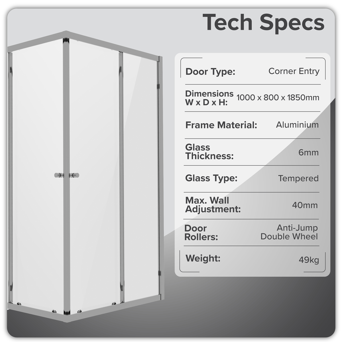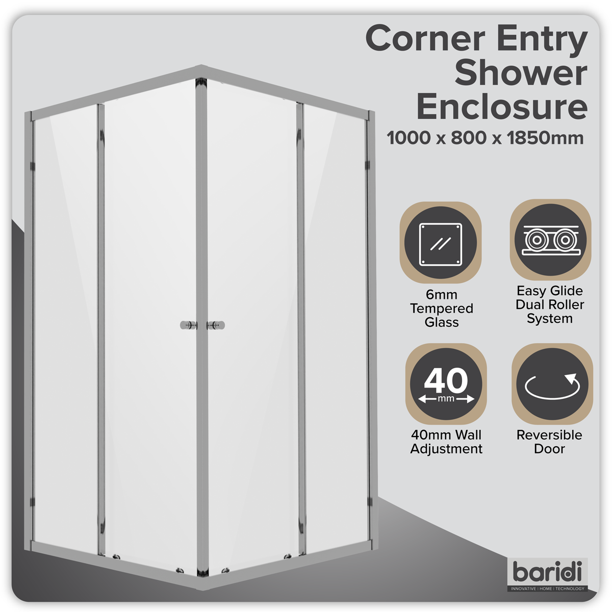 183.58 2026-05-21Can be installed in any direction to suit your layout. High quality finish will protect the enclosure and maintain its appearance over time. Features 6mm tempered glass, certified to EN12150 for enhanced safety and durability. Can be installed at ground level or on a shower tray. The generous 4cm adjustment range provides excellent flexibility during installation, making it easy to achieve a perfect fit in a wide variety of spaces and set-ups.