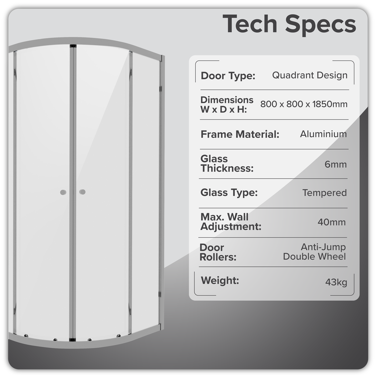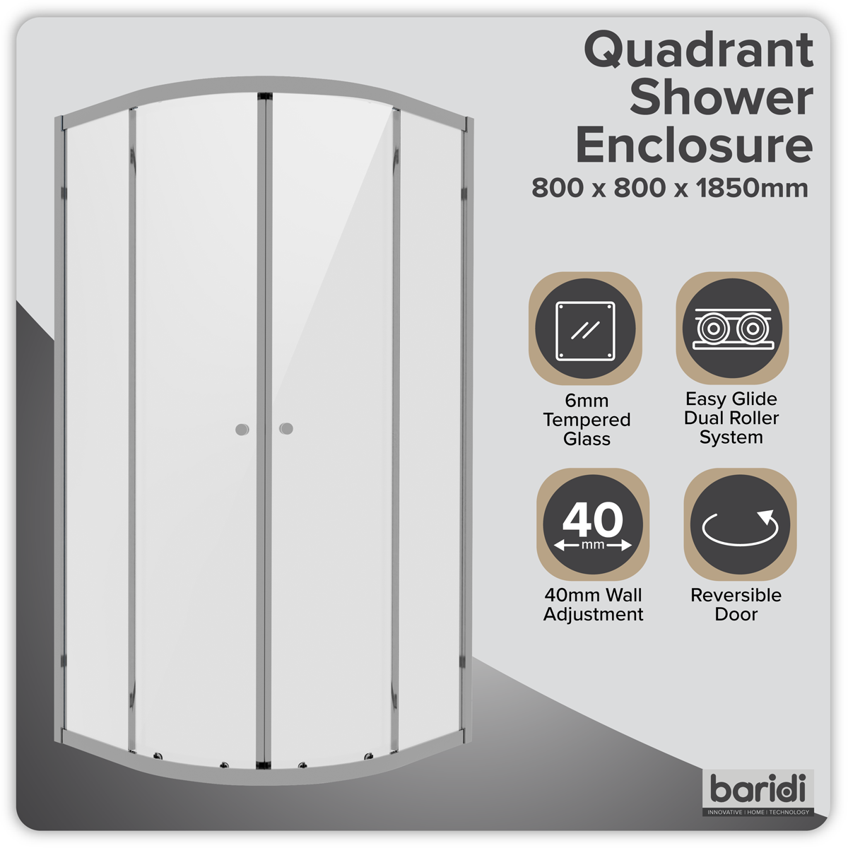 188.98 2026-05-21Can be installed in any direction to suit your layout. High quality finish will protect the enclosure and maintain its appearance over time. Features 6mm tempered glass, certified to EN12150 for enhanced safety and durability. Can be installed at ground level or on a shower tray. The generous 4cm adjustment range provides excellent flexibility during installation, making it easy to achieve a perfect fit in a wide variety of spaces and set-ups.