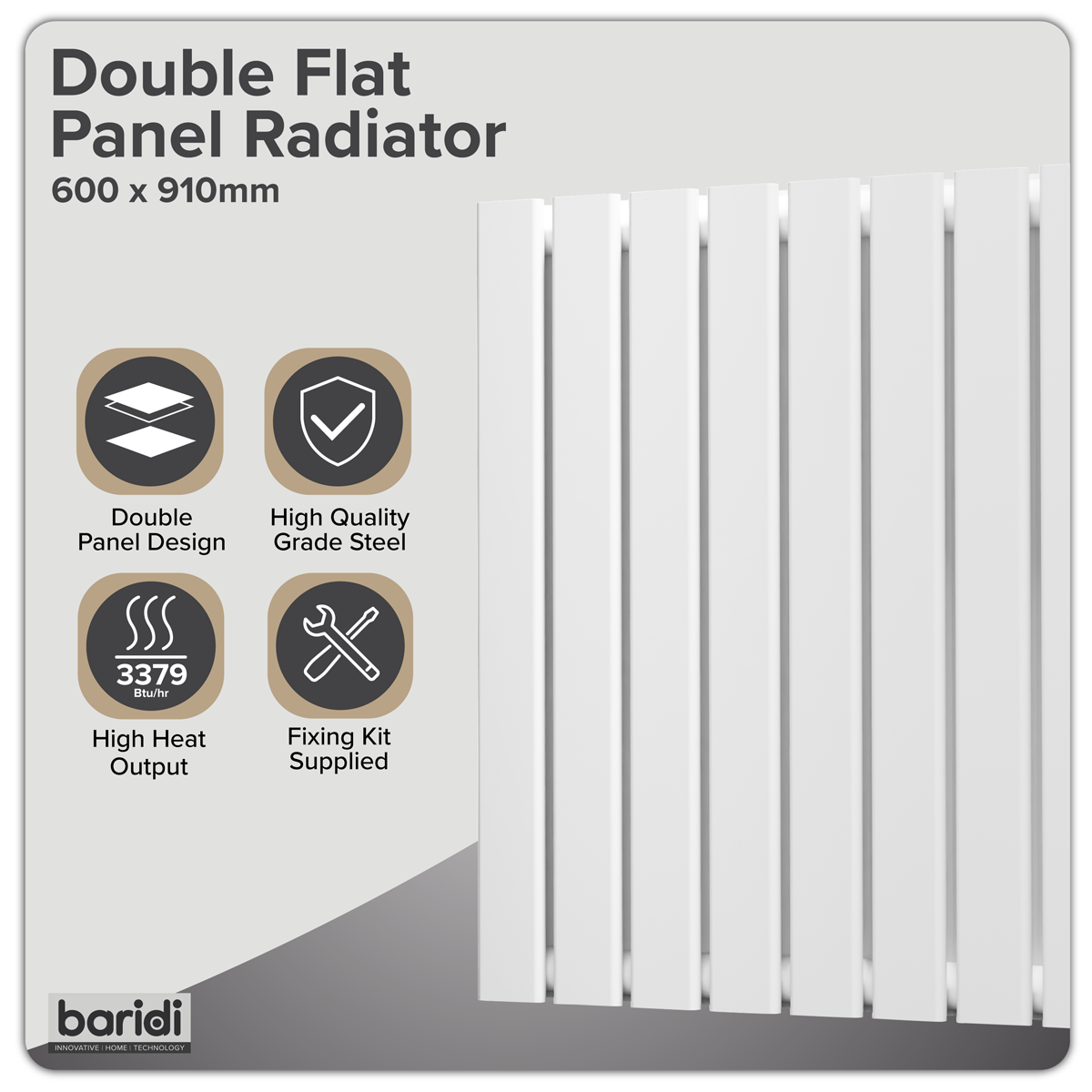 156.58 2026-05-12Horizontal flat panel design radiator delivers a BTU output of 3379BTU/hr. With double panel configuration for increased output delivering consistent warmth across compact spaces. In a contemporary styling that suits all environments. Supplied with wall brackets and fixings for straightforward fitting. Fully compatible with all UK central heating setups for seamless integration. Constructed from high-grade steel for long-term reliability. Available in multiple sizes and colours to suit different room sizes and layouts. *Please note: Radiator valves are not included.