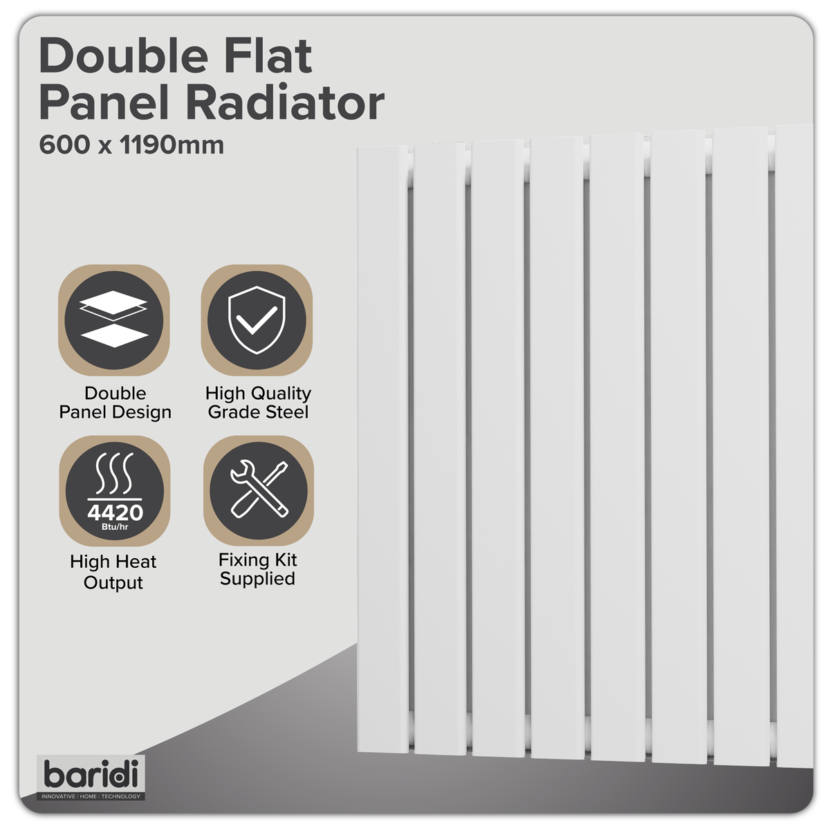 178.18 2026-05-12Horizontal flat panel design radiator delivers a BTU output of 4420BTU/hr. With double panel configuration for increased output delivering consistent warmth across compact spaces. In a contemporary styling that suits all environments. Supplied with wall brackets and fixings for straightforward fitting. Fully compatible with all UK central heating setups for seamless integration. Constructed from high-grade steel for long-term reliability. Available in multiple sizes and colours to suit different room sizes and layouts. *Please note: Radiator valves are not included.