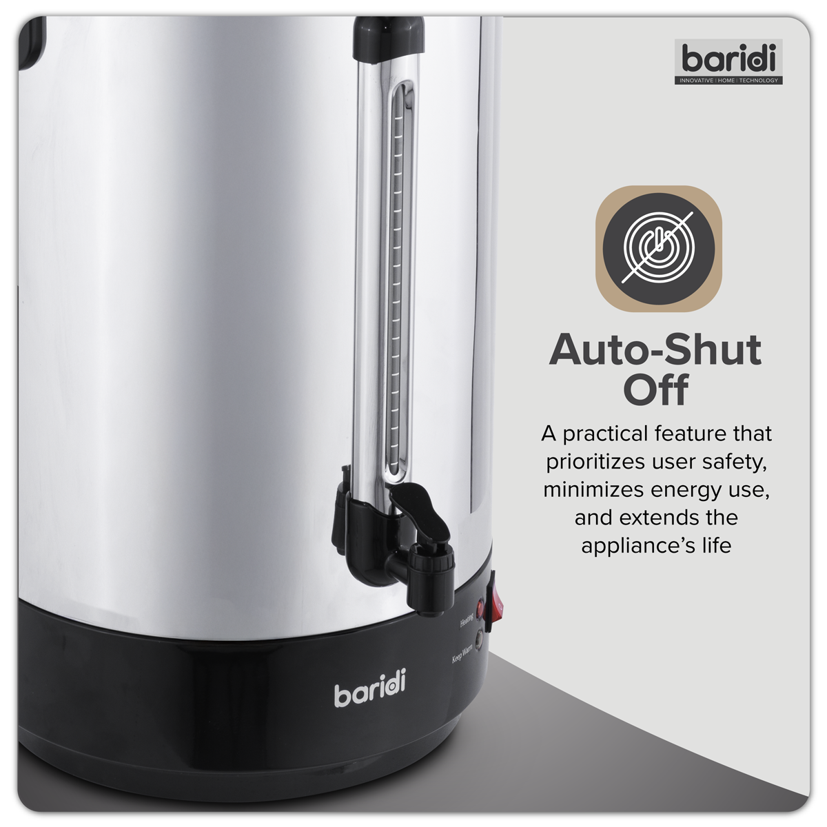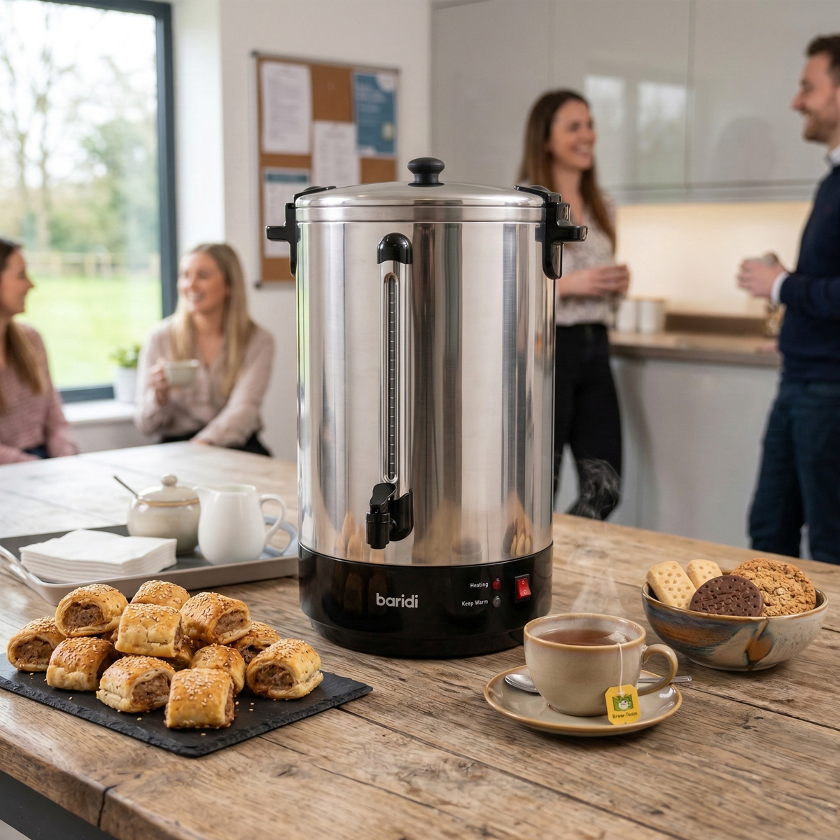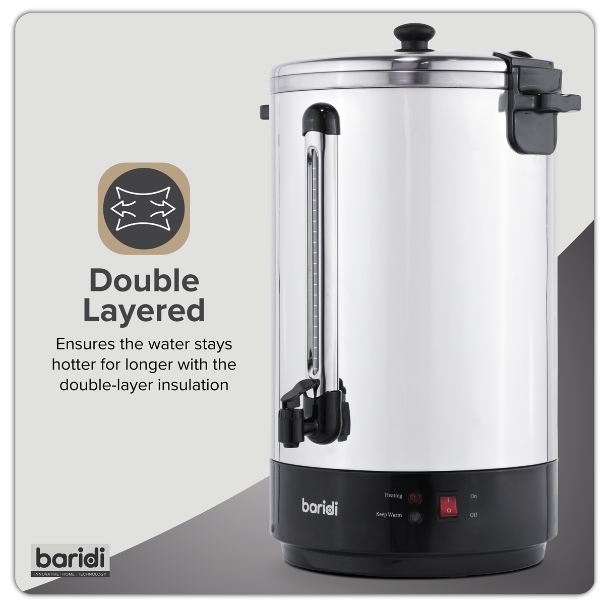 3.60 2026-05-0230L Capacity is sufficient for large batches of hot water, ideal for frequent use without constant refilling. Double layer stainless steel body ensures durability and heat retention, maintaining water temperature efficiently while being resistant to corrosion. Keep warm function ensures your water stays at the desired temperature. Water gauge enables easy monitoring of water levels without the need to open the boiler. Ideal for use in a variety of settings from offices or a café to a large family gathering.