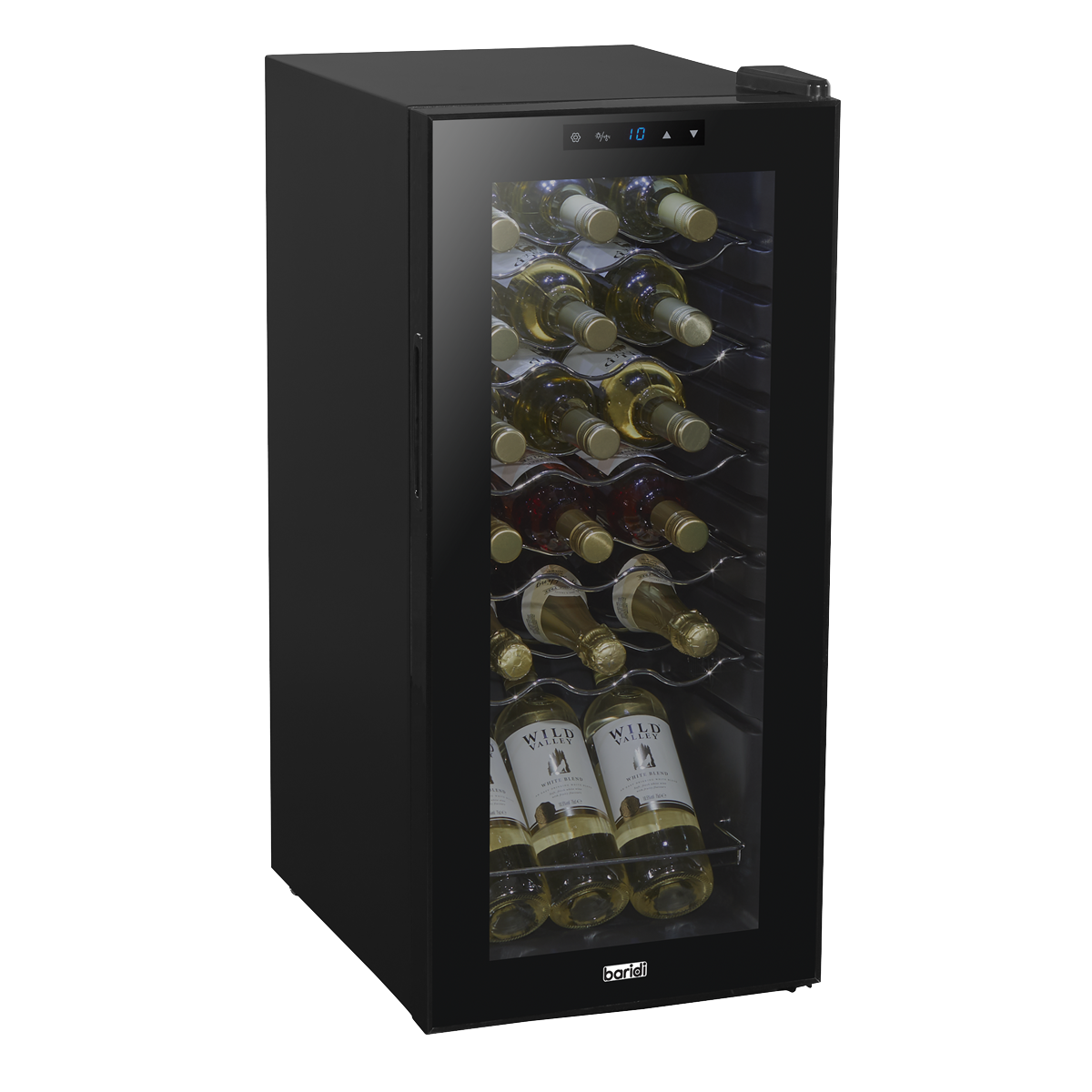 221.98 2025-11-01Space for up to 18 bottles of wine. Temperature range between 5-18°C with touchscreen controls. (Recommended ambient temperature up to 25°C). Features soft white LED light. Accommodates a maximum bottle height of 33cm. Compressor cooling technology with automatic defrost feature.