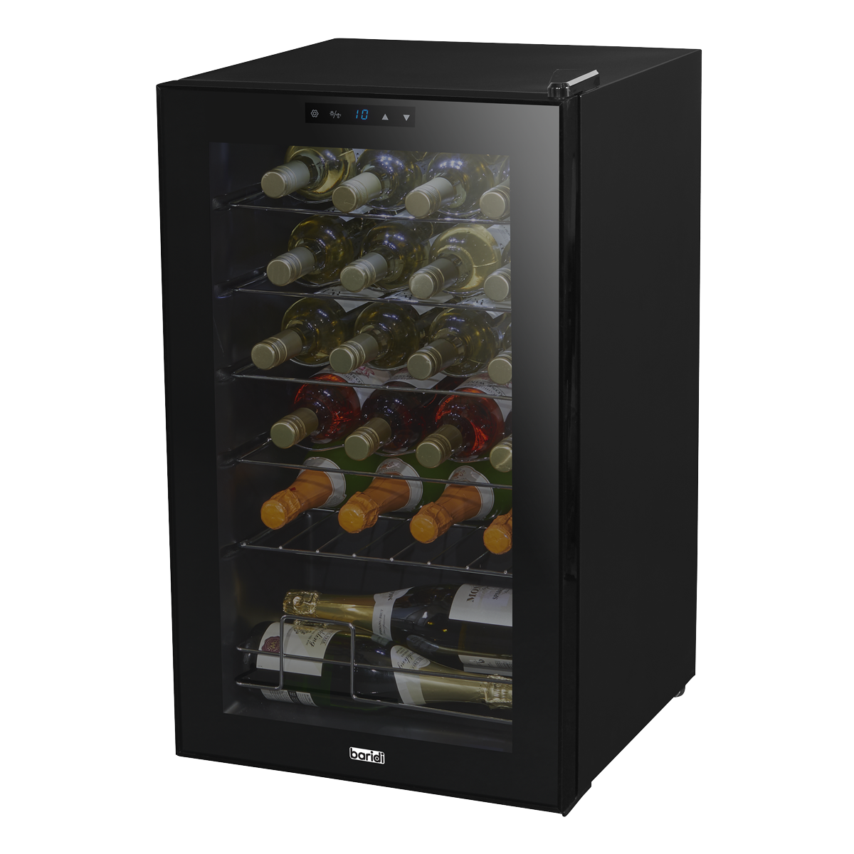 230.08 2025-11-01Sleek and compact design with tempered mirror glass door to reflect UV light and help protect your wine. Temperature range between 5-18°C controlled by touchscreen controls. (Recommended ambient temperature up to 25°C). Features soft white LED light. Waved metal shelves with space for up to 24 bottles of wine. Accommodates a maximum bottle height of 33cm. Compressor cooling technology with automatic defrost feature to make this unit as easy as possible to use. Energy Efficiency Class G. Power Cable Length 1.8m. A minimum space of 5cm is required for the rear of the fridge and 3cm for the top and both sides. This will maximise the efficiency, performance and life of the fridge and also ensure that there is sufficient space for the hinge to operate effectively.