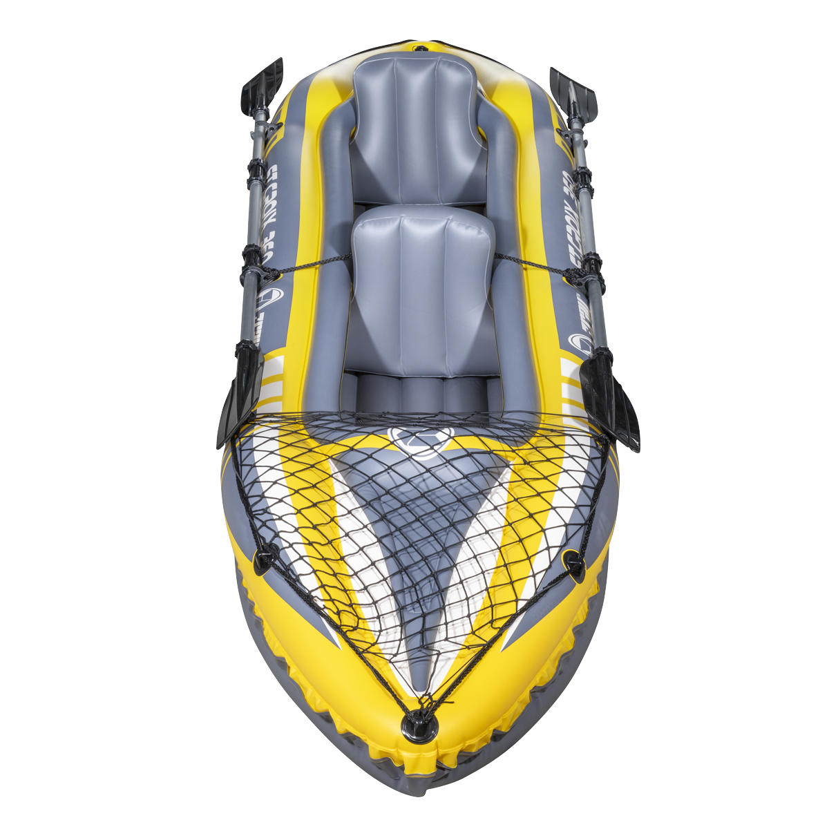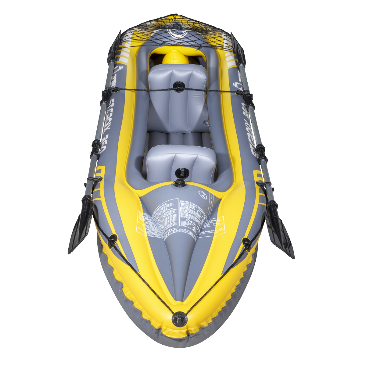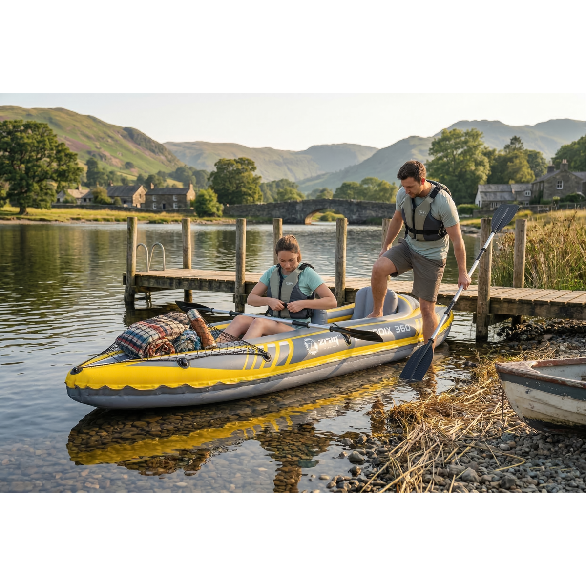 119.98 2026-05-06This 2-person inflatable kayak is perfect for tandem exploration, providing ample space for two paddlers to enjoy the water together. Enjoy the freedom of the water with a reliable and compact kayak that's easy to transport and offers a comfortable and enjoyable paddling experience for two. The included foot pump makes inflation a breeze, allowing you to set up your kayak quickly. This kayak is supplied with two durable aluminium oars, providing efficient propulsion and control. With a robust weight capacity of 160kg, this kayak is well-suited for two adults. Size (L x W x H) - 350 x 78 x 52cm.