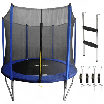 174.88 2026-01-11This 8ft Heavy-Duty Trampoline ideal for keeping children or adults active whilst having fun outdoors at home. The perfect gift for all the family regardless of age. High quality galvanised steel springs tested to last for a minimum of 1 million bounces. PVC and PE covered EPE foam surround to protect children from accidentally landing on the springs. Fitted with PE safety enclosure net with zip entrance door to limit risk of injury. Tested and approved to EN71. Anchor kit and wide step ladder for further safety. Supplied with anchor kits to secure the trampoline in high winds and a ladder for ease of access.